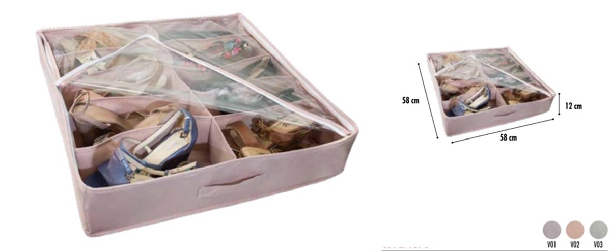 Fermuarlı bir ayakkabı muhafaza hurcudur. İçerisine 10 çift ayakkabı alır. İçerisine konulan ayakkabıları tozdan, rutubetten ve her türlü dış etkenden koruduğu gibi kapladığı ufak alan ile size daha geniş mekanlar kazandırır.