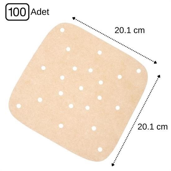 Paket İçeriği: 100 Adet Delikli Kare Model Air Fryer Pişirme Kağıdı