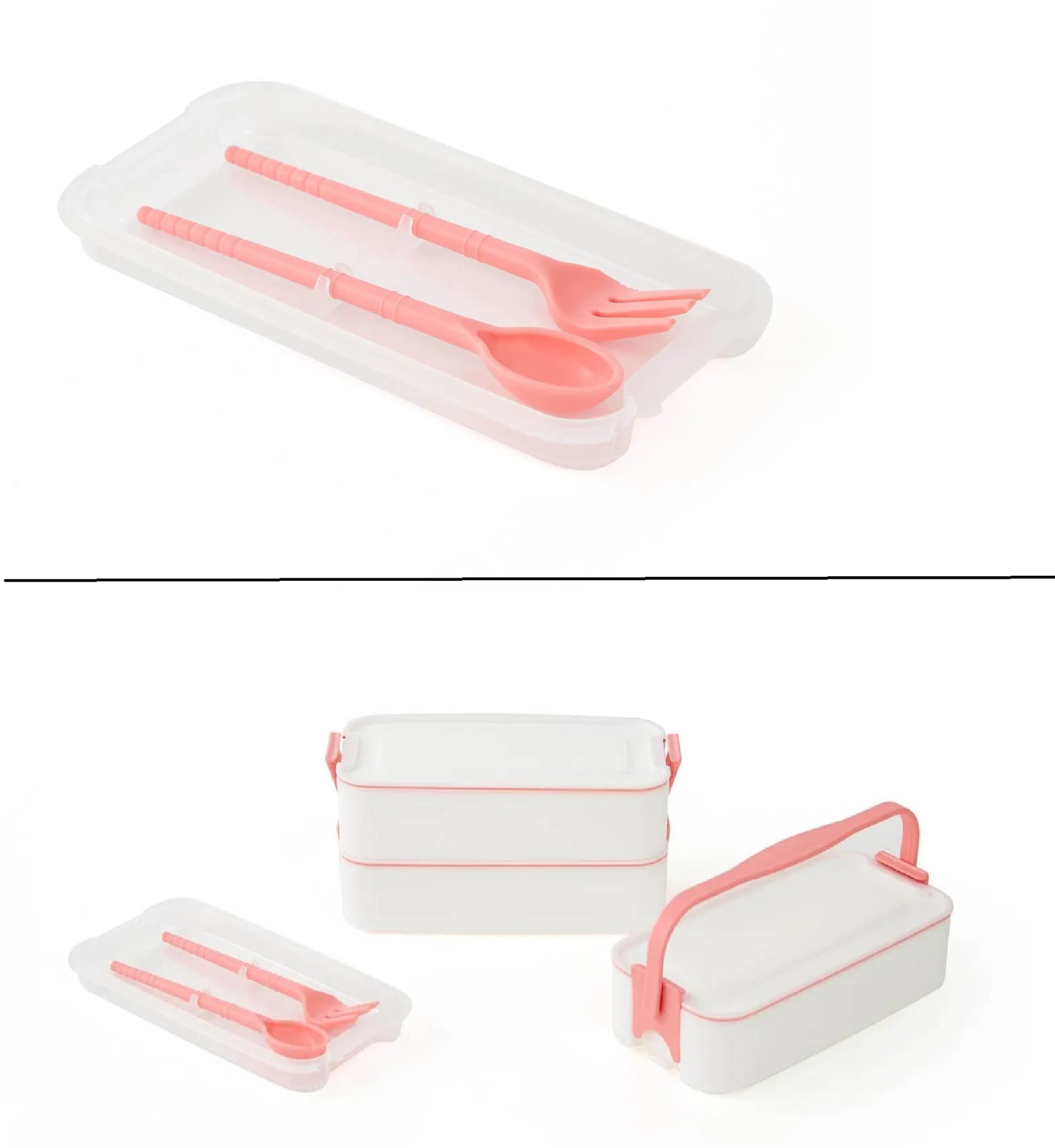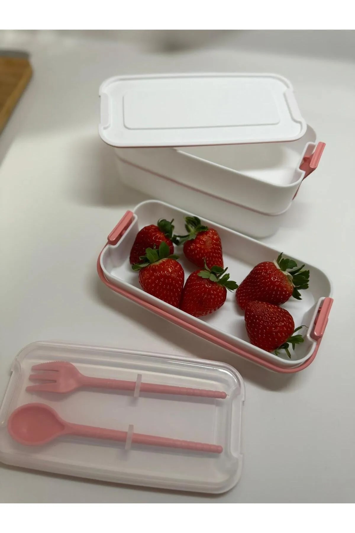 3 Katlı Kulplu Beslenme Kabı Diyet Sefer Tası Saklama Kabı Çatal Kaşıklı