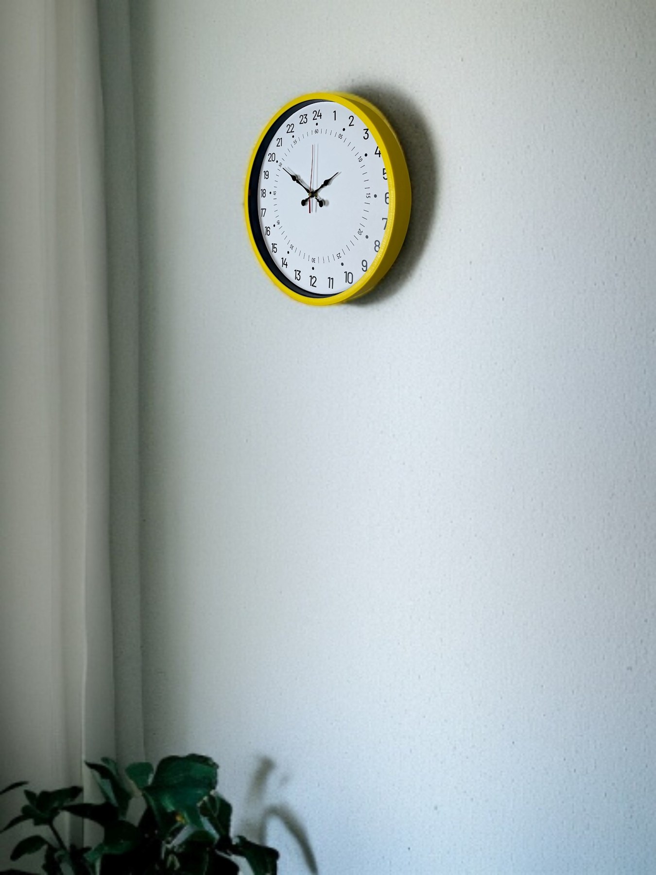 Klasik 12 saatlik saatlerden farklı olarak 24 saatlik zaman dilimini tek kadran üzerinde gösteren bu özel tasarım 36 cm sarı duvar saati, zamanı daha net ve bilinçli takip etmek isteyenler için ideal bir çözümdür. Günün tamamını tek bakışta görme imkânı sunan yapısı sayesinde, saat algısını güçlendirir ve alışılmışın dışında bir kullanım deneyimi sağlar.