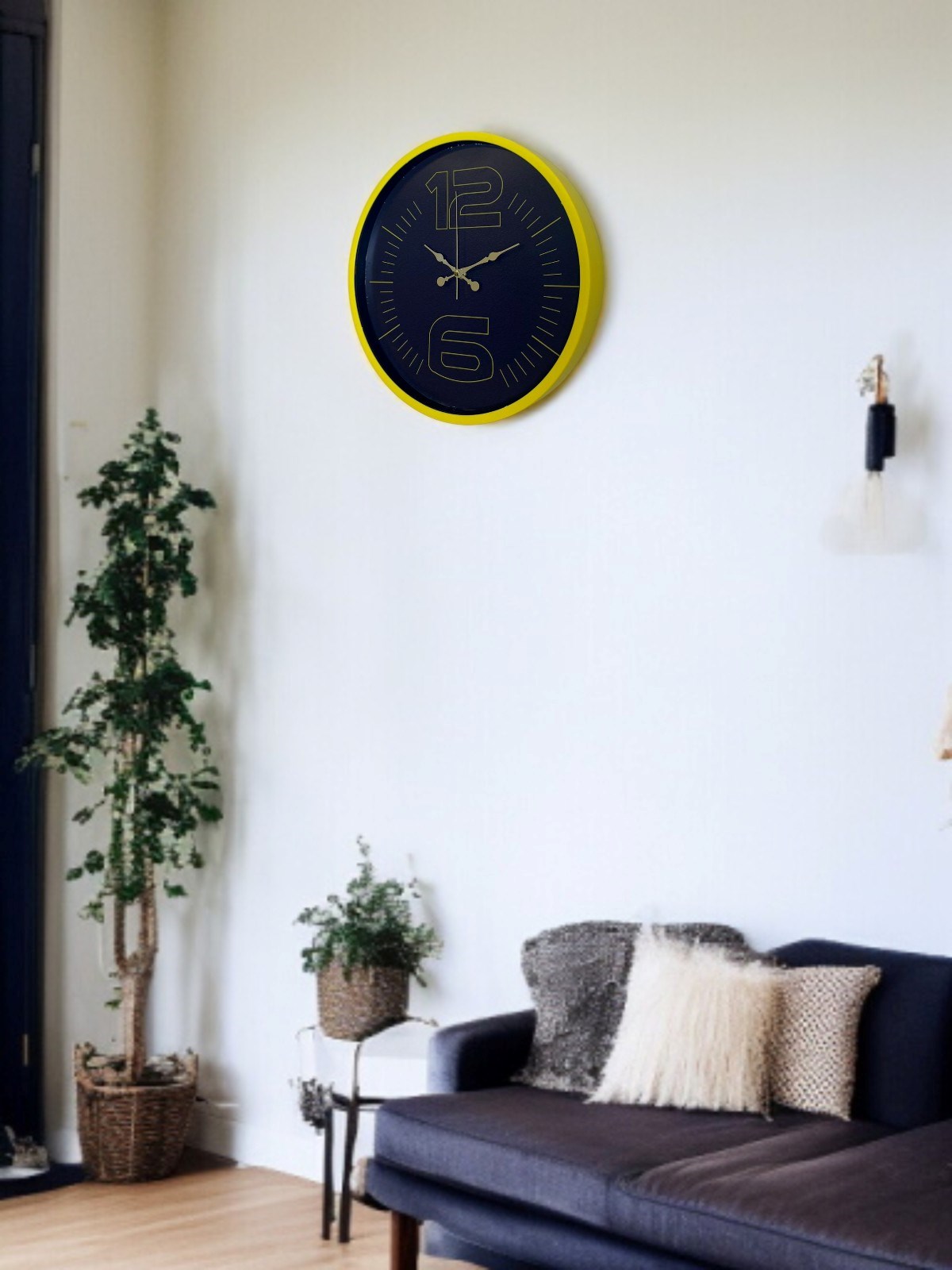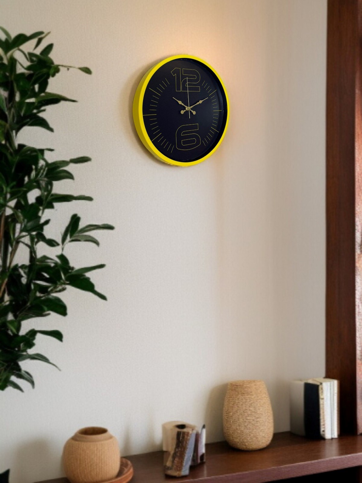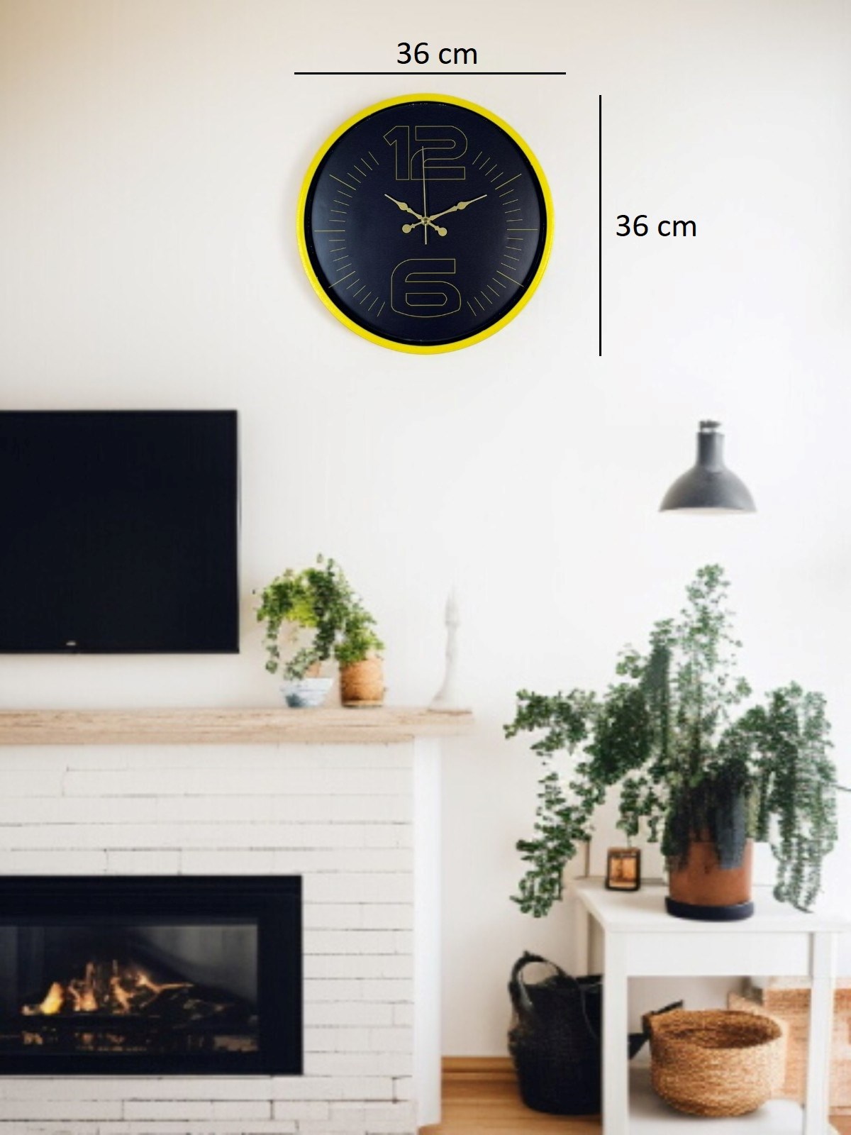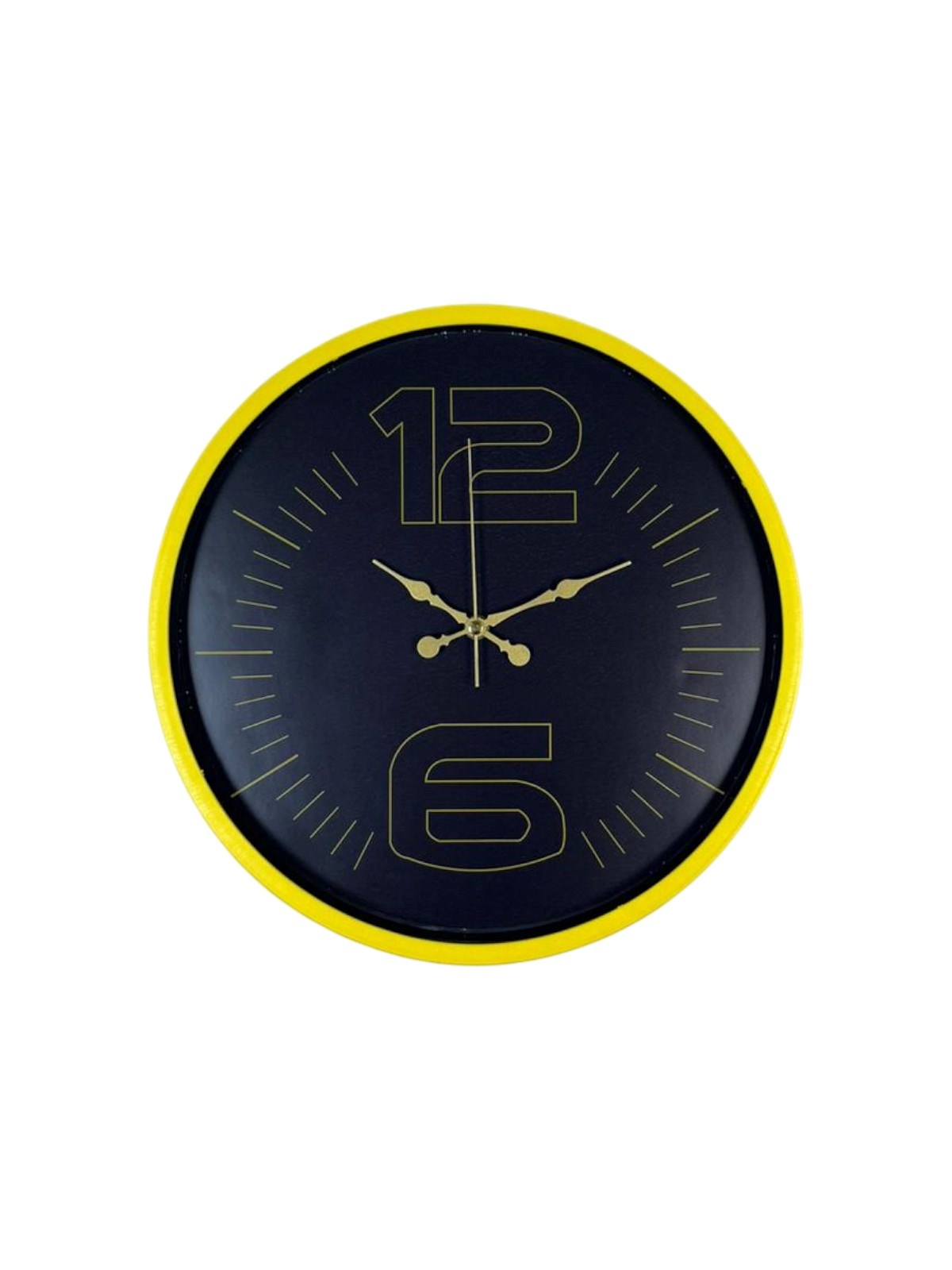 Canlı sarı çerçevesi ve koyu renk kadran tasarımıyla öne çıkan bu 36 cm duvar saati, bulunduğu ortama enerji ve modern bir karakter kazandırır. Altın tonlu rakamları ve kontrastlı kadran yapısı sayesinde saati uzaktan bile rahatlıkla okumak mümkündür.