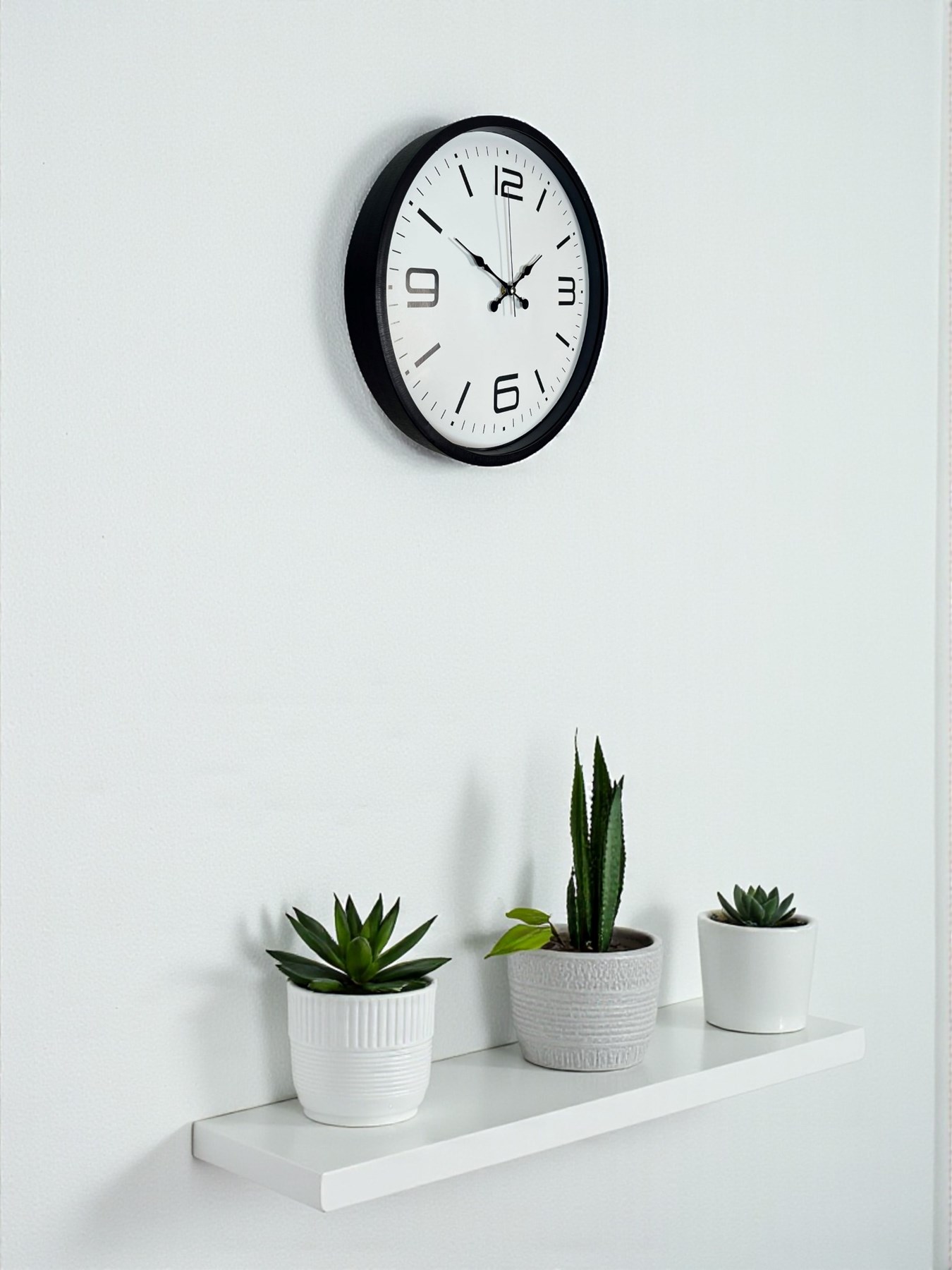 ÜRÜN AÇIKLAMASI Modern çizgileri ve güçlü tasarımıyla dikkat çeken bu 36 cm siyah duvar saati, hem şıklığı hem de işlevselliği bir arada sunan özel bir modeldir.; Siyah çerçevesi, minimal ve modern dekorasyonlara mükemmel uyum sağlarken; geniş beyaz kadranı üzerinde yer alan büyük ve modern fontlu rakamlar ile kolay okunabilirlik sunar.; Özellikle sade, şık ve zamansız bir duvar saati arayanların ilk tercihlerinden biridir.; Saatin ön yüzeyinde kullanılan gerçek cam, ürün kalitesini belirgin şekilde artıran premium bir özelliktir.; Gerçek cam; plastik camlara oranla çizilmeye karşı daha dayanıklıdır, sararma yapmaz ve uzun yıllar boyunca şeffaflığını korur.; Işığı doğru kırarak kadranın her açıdan net görünmesini sağlar.; Ürüne estetik bir parlaklık ve profesyonel bir görünüm kazandırır.; Sessiz çalışan akar saniye (sweep) mekanizması, saniyenin akıcı bir şekilde ilerlemesini sağlar ve kesinlikle tıkırtı sesi çıkarmaz.; Bu nedenle saat; yatak odası, çalışma odası, ofis, mutfak ve sessizliğin önemli olduğu tüm mekanlarda rahatlıkla kullanılabilir.; Zamanı takip ederken rahatsız edici sesler duymazsınız.; Dayanıklı plastik kasası hafiftir, kolay monte edilebilir ve uzun ömürlü kullanım sunar.; Siyah rengi; modern, minimal, endüstriyel ve profesyonel dekor tarzlarıyla mükemmel uyum sağlar.; Hem ev hem iş yeri için güvenle tercih edilebilecek bir modeldir.;