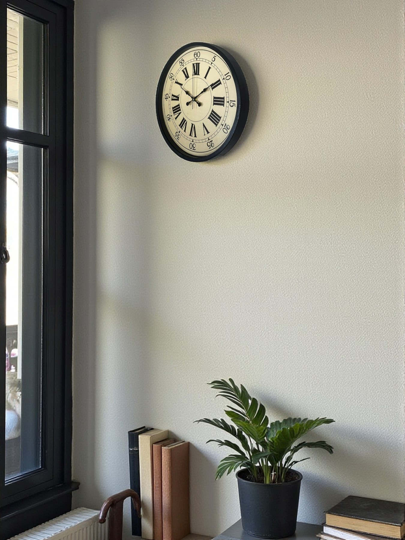 Modern tasarımı ve sade görünümüyle her ortamla uyum sağlayan 36 cm plastik duvar saati, sessiz çalışması ve net okunabilir Roma rakamlı kadranı ile hem şık hem işlevsel bir dekor ürünüdür. Hafif yapısı sayesinde kolayca duvara monte edilir ve uzun ömürlü mekanizmasıyla güvenilir bir kullanım sunar.