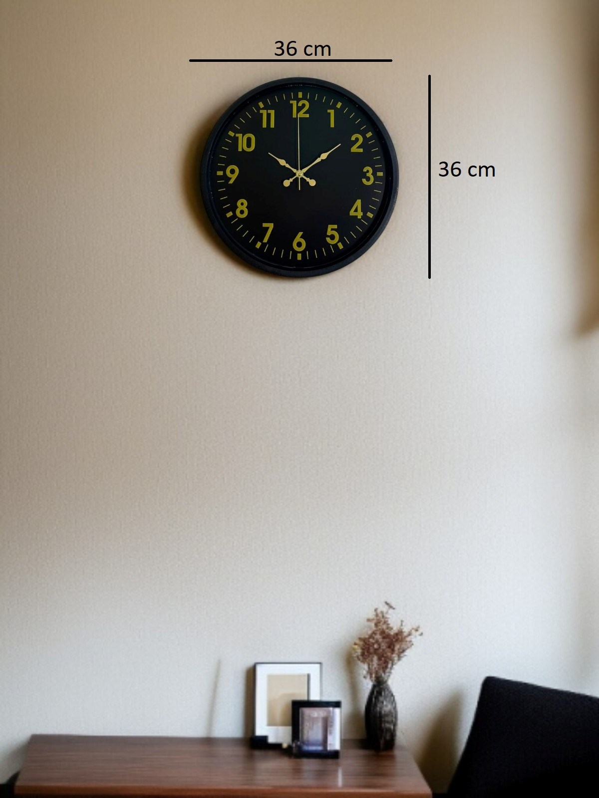 Dengeli rakam yerleşimi ve zarif akrep–yelkovan formu, ürünü hem işlevsel hem de dekoratif bir tamamlayıcı haline getirir. Sessiz ve akıcı mekanizması, tik-tak sesi oluşturmadan çalışarak salon, ofis ve yatak odalarında huzurlu bir kullanım sağlar.