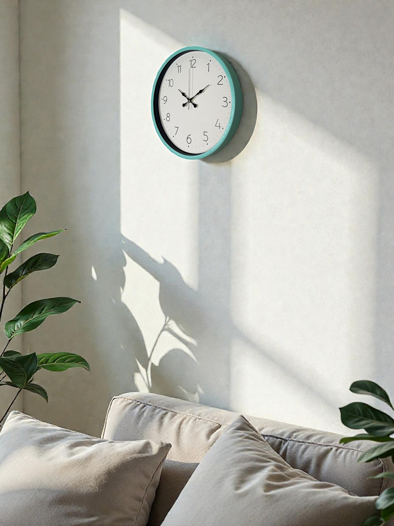 Modern, ferah ve enerjik tasarımıyla dikkat çeken 36 x 36 cm turkuaz çerçeveli duvar saati, bulunduğu ortama tazelik ve canlılık katan özel bir dekor ürünüdür. Beyaz kadranı, büyük okunaklı rakamları ve turkuaz çerçevesinin şık uyumu sayesinde ev, ofis ve çalışma alanlarına modern bir dokunuş ekler. Minimal tasarımı sayesinde her dekorasyon stiline kolayca uyum sağlar.