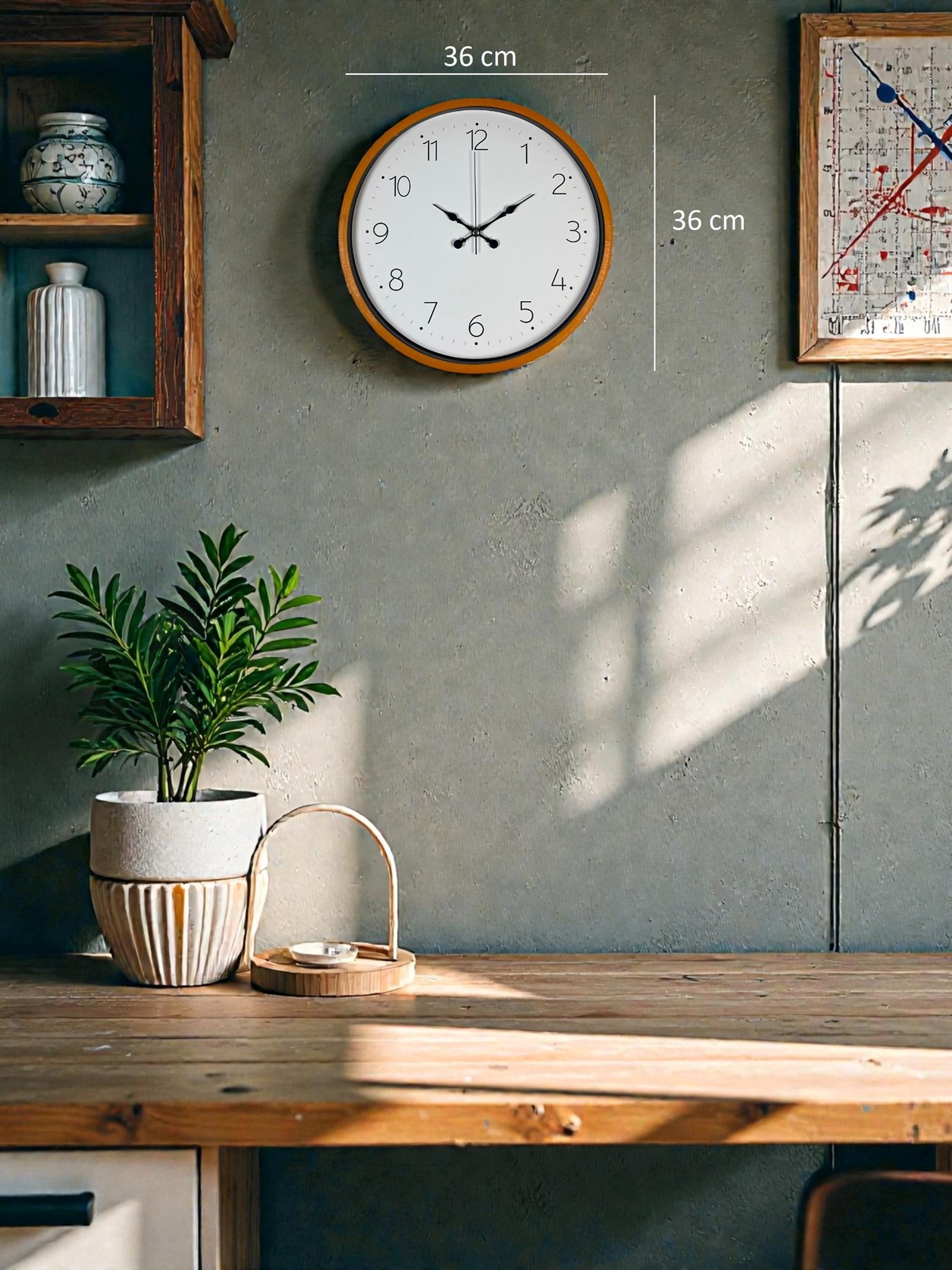 Ev, ofis, mutfak veya çalışma odanıza modern bir dokunuş katmak için tasarlanan 36 cm duvar saati, dayanıklı plastik kasası ve 2 mm kalınlığındaki gerçek cam ön yüzeyiyle kaliteli bir kullanım sunar. Sessiz çalışan mekanizması sayesinde tıkırtı yapmaz, yaşam alanınızda huzurlu bir ortam oluşturur.