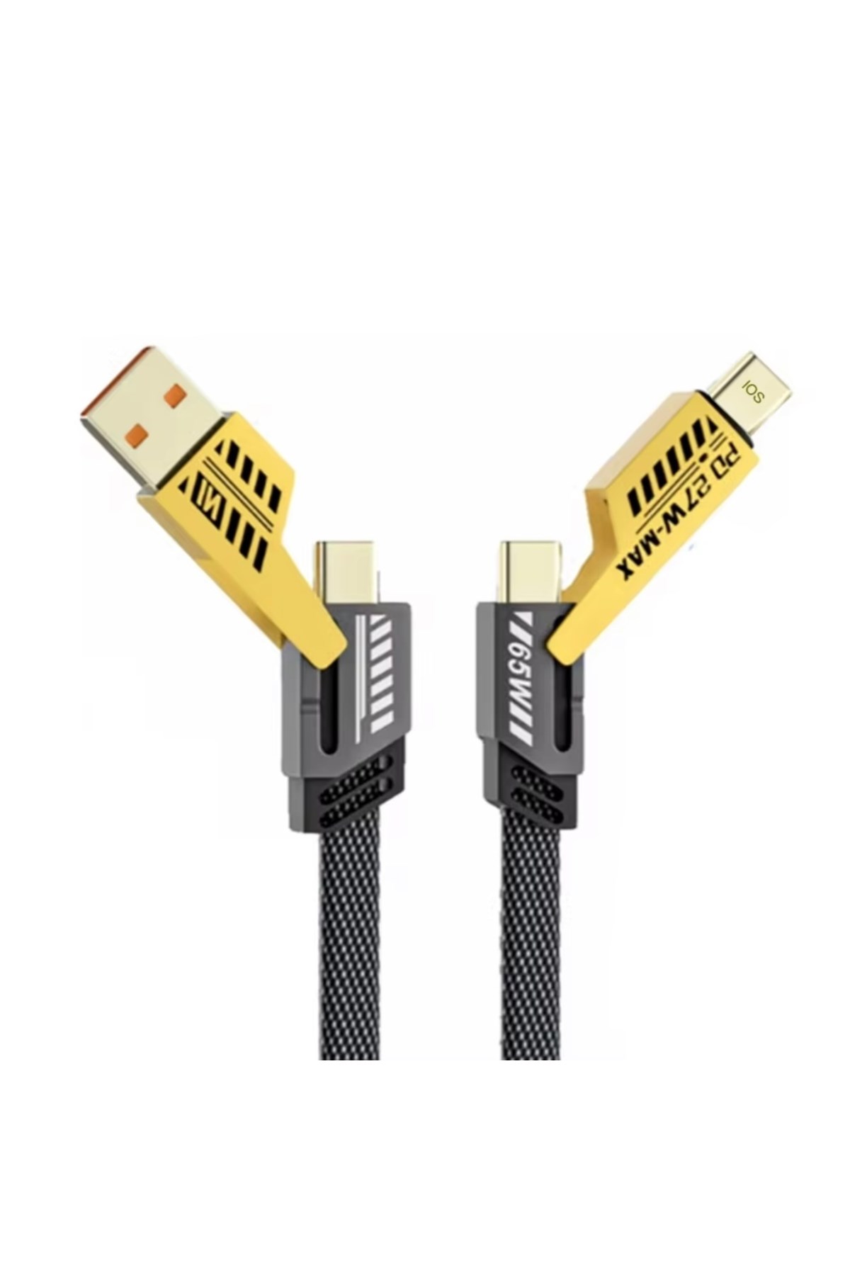 Ürün Özellikleri:•4 in 1 Çok Fonksiyonlu Tasarım: Tek kablo ile USB → USB-C, USB-C → USB-C, USB-C → USB, USB → USB bağlantı seçeneklerini sunar.; •65W PD Hızlı Şarj: Telefon, tablet ve laptoplarda hızlı ve güvenli şarj imkânı.; •Hızlı Veri Aktarımı: Yüksek hızda dosya transferi sağlar.; •Dayanıklı Örgü Kablo: Kopma, bükülme ve kırılmalara karşı ekstra güçlü.; •Geniş Uyumluluk: Tüm USB-C ve USB girişli cihazlarla uyumludur.; •Tek Kablo, Çok Çözüm: Yanınızda fazladan kablo taşımanıza gerek kalmadan tüm cihazlarınızı şarj edin.; ✅ 4 in 1 çok fonksiyonlu tasarımı sayesinde hem işinizi kolaylaştırır hem de çantanızda yer açar!