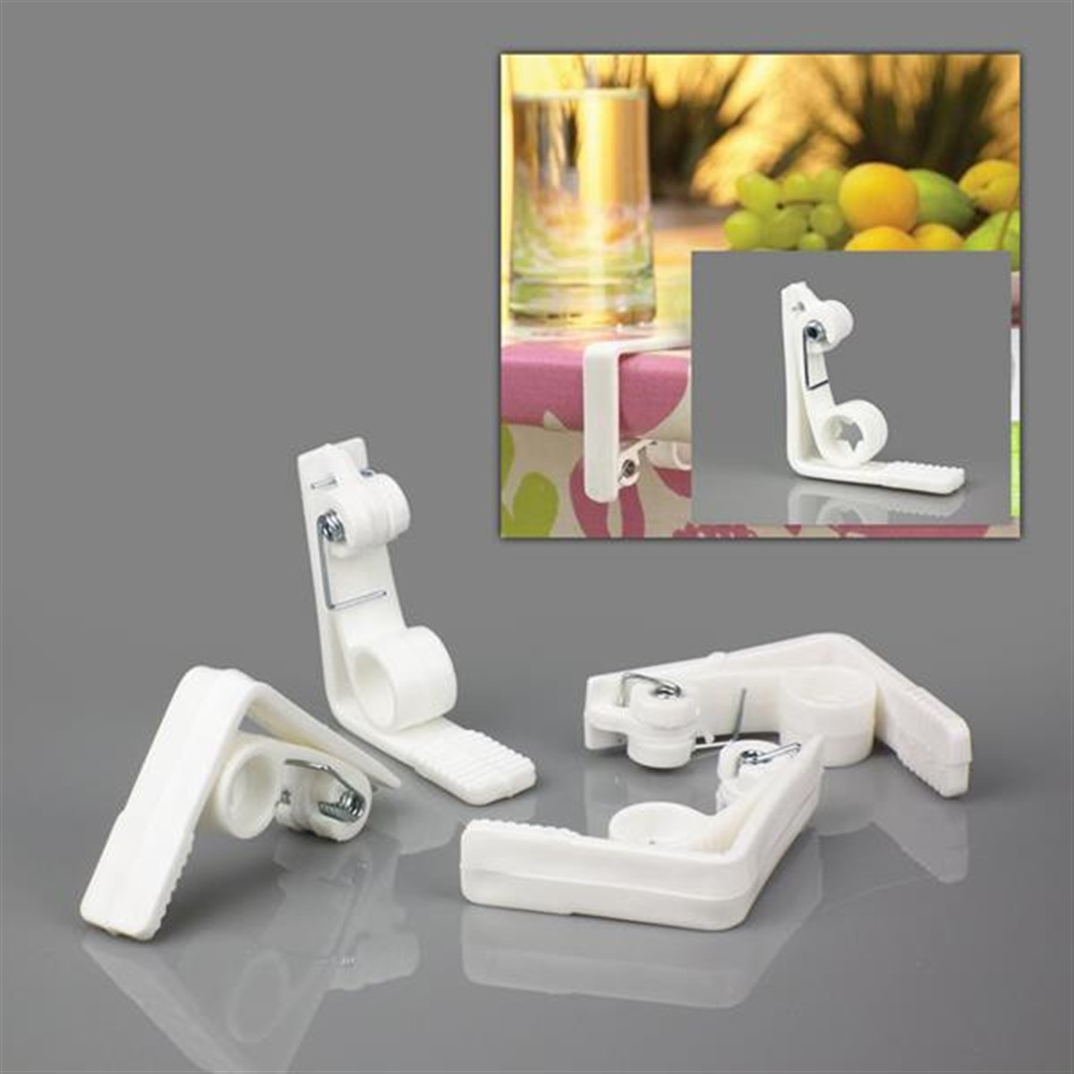 Masa örtünüzün masaya sabitleyip kaymasını veya uçmasını engelleyen 4 Adet Yaylı Masa Örtüsü Mandalı.