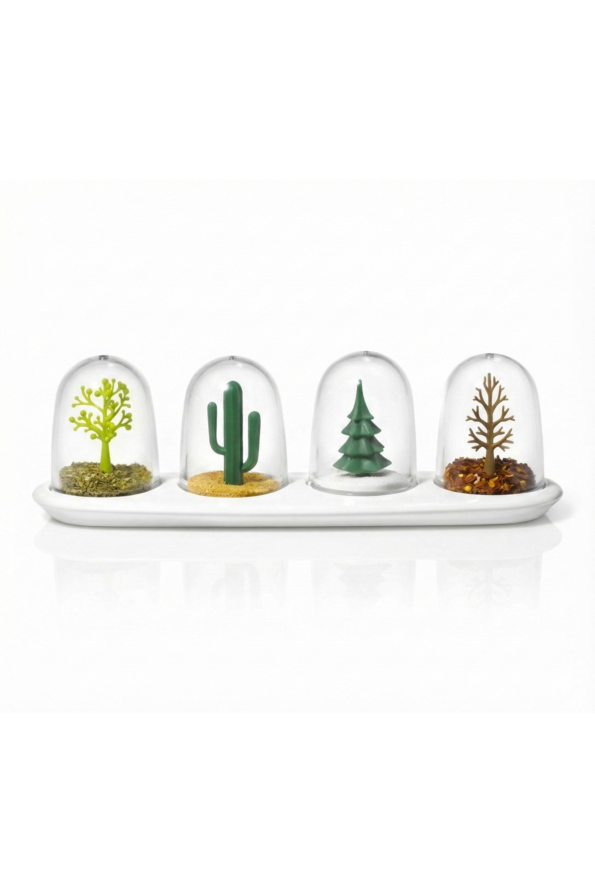 Mutfağınıza şıklık ve fonksiyonellik katacak 4 Mevsim Temalı Tasarım Baharatlık Seti, dekoratif ağaç ve kaktüs figürlü standıyla dikkat çekiyor. Bu özel set, tuzluk ve biberlik olarak kullanıma uygun olup, her öğününüze estetik bir dokunuş sağlar.