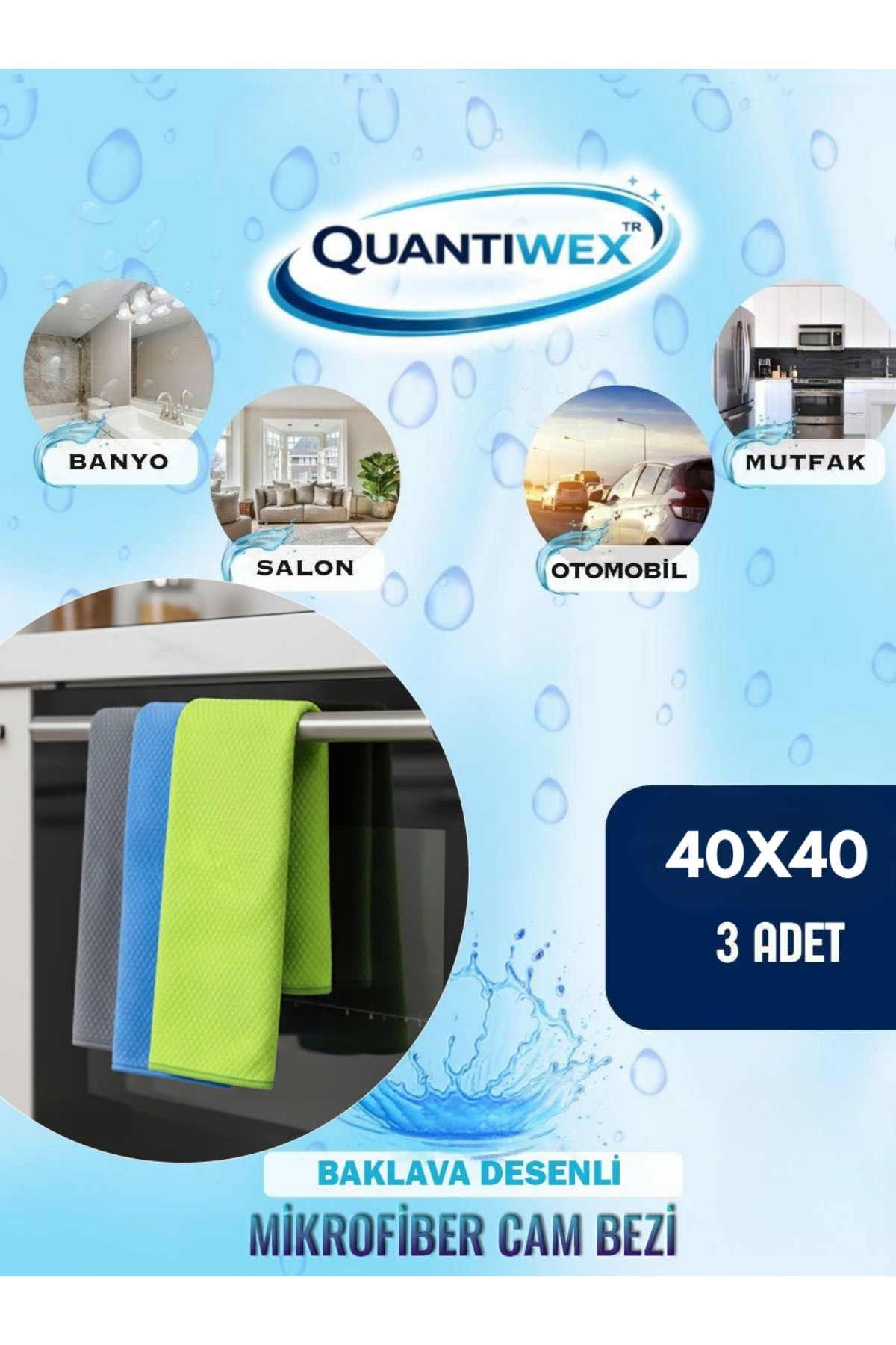 40x40 3’lü Mikrofiber Cam Bezi Seti – İz Bırakmayan Sihirli Temizlik ve Oto Kurulama Bezi
