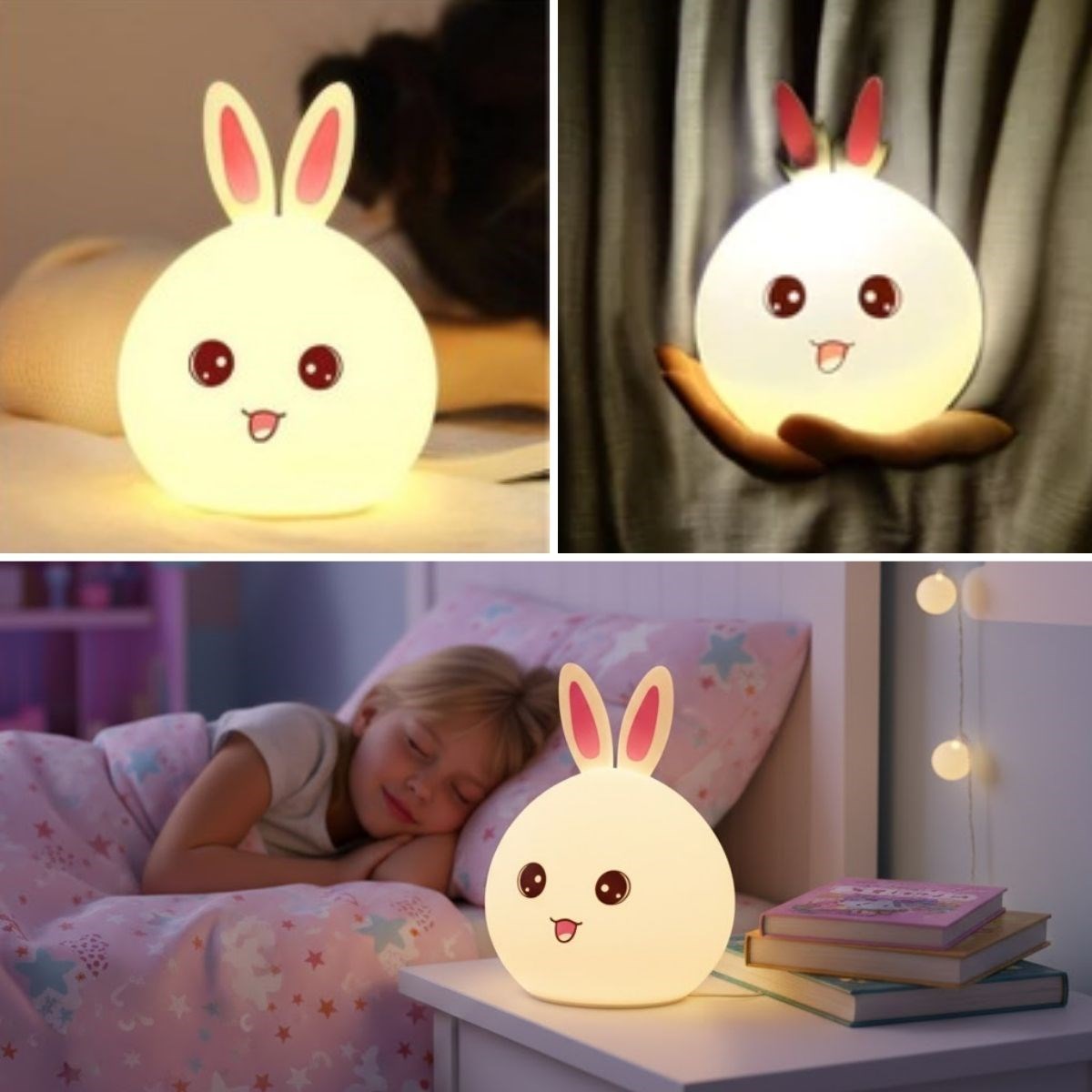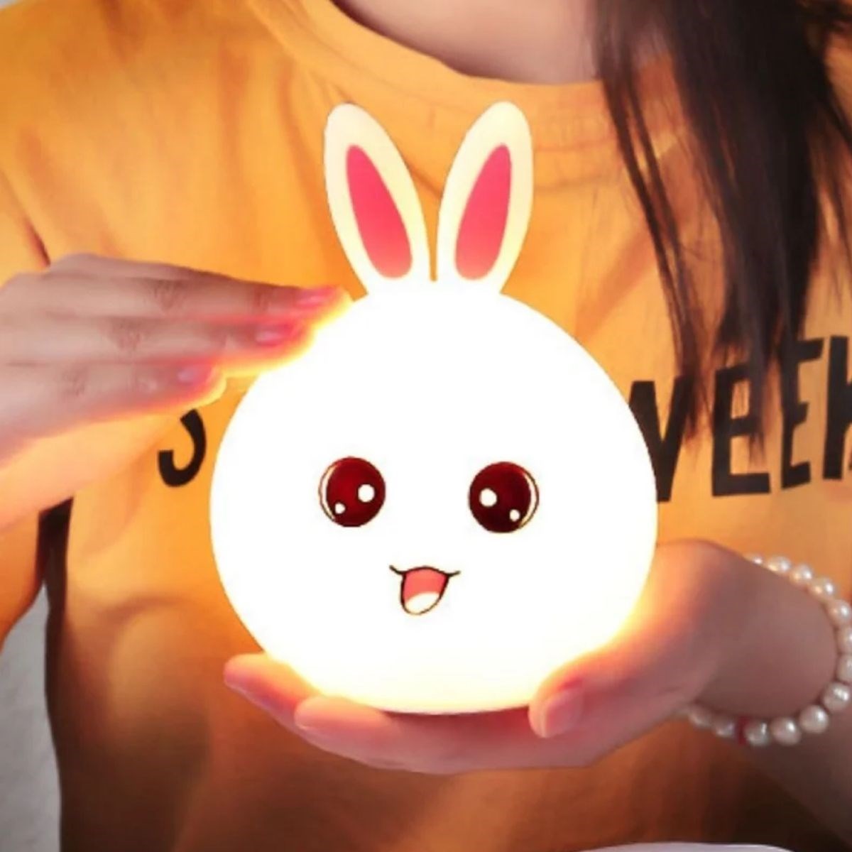 Tavşan Figürlü Pofuduk LED Gece Lambası, sevimli tavşan tasarımı ve yumuşak dokulu gövdesiyle yaşam alanlarınıza sıcak ve huzurlu bir atmosfer kazandırır. Göz yormayan LED ışığı sayesinde çocuk odaları, bebek odaları, yatak odaları ve masaüstleri için ideal bir gece aydınlatması sunar.