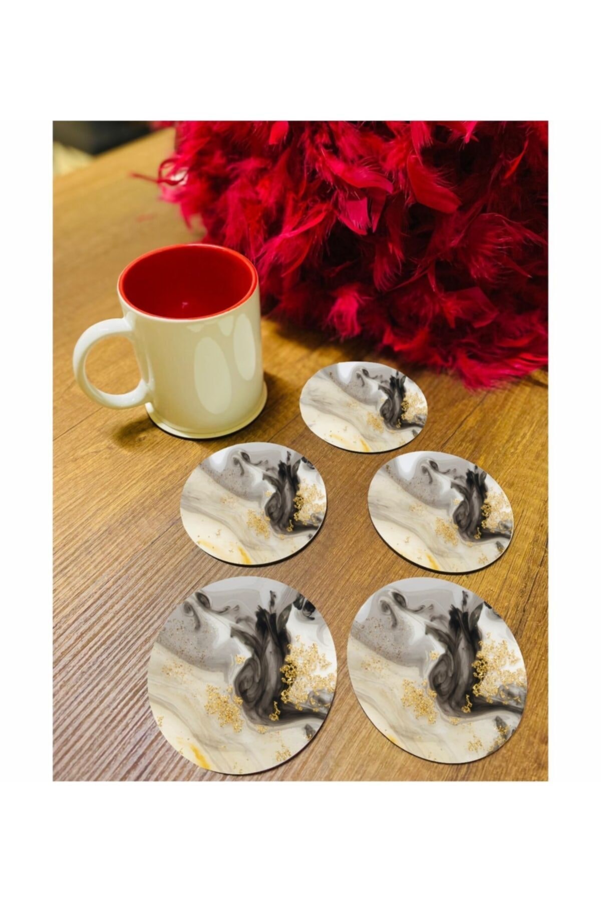 Mermer malzemesi sayesinde şık ve modern bir görünüm sunar, her türlü içecek deneyiminizi zenginleştirir; Altı parça set halinde sunulan bu bardak altlıkları, misafirlerinize zarif bir dokunuşla servis yapmanızı sağlar; Siyah ve gold renk kombinasyonu ile her türlü sofra düzenine kolayca uyum sağlar ve estetik bir bütünlük oluşturur; Dayanıklı yapısı ile uzun süreli kullanım için idealdir; sık kullanımda bile formunu korur ve leke tutmaz özelliğiyle pratik bir kullanım sunar;