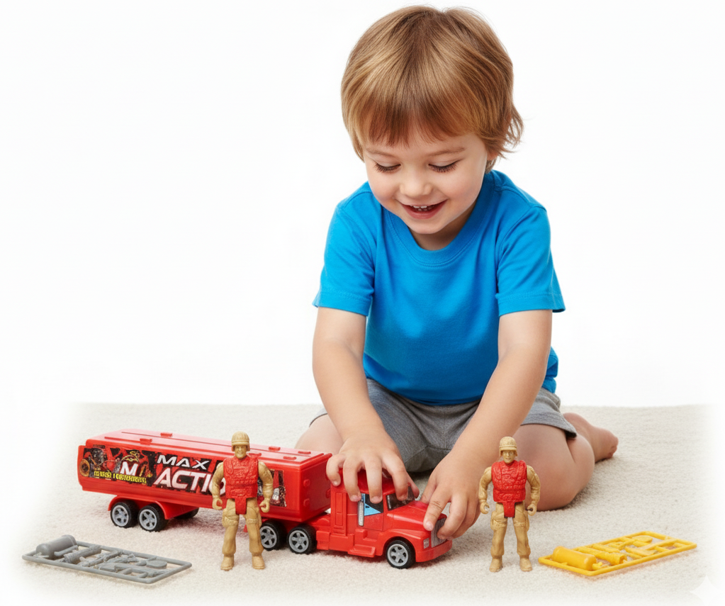 Set içinde 3 dayanıklı asker figürü, acil durum tırı ve gerçekçi aksesuar parçaları bulunur.