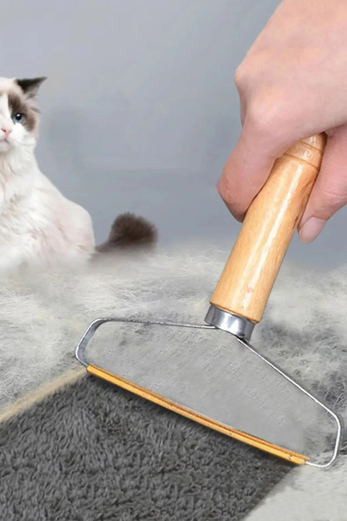 Ahşap Saplı Metal Kazak - Elbise - Halı Tüyü Temizleme Çift Taraflı Tüy Tiftik Toparlayıcı
