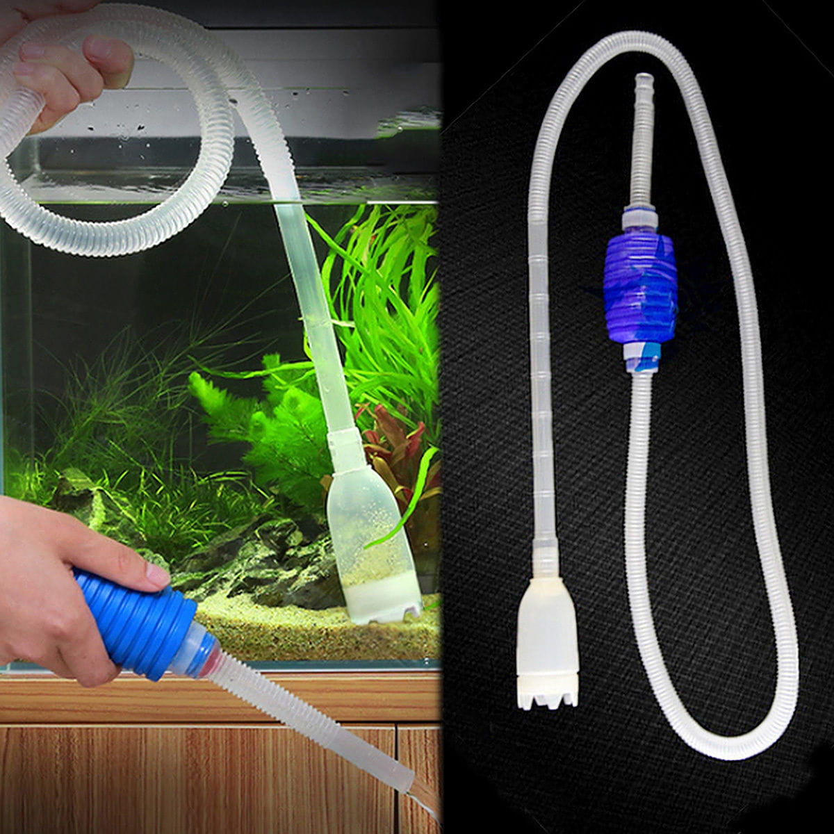 Akvaryumunuzu temizlemek, suyunu değiştirmek veya tahliye amacıyla kullanabileceğiniz pompalı , filtreli 160 Cm Uzunluğunda Akvaryum Temizleme - Tahliye Sifonu 'dur