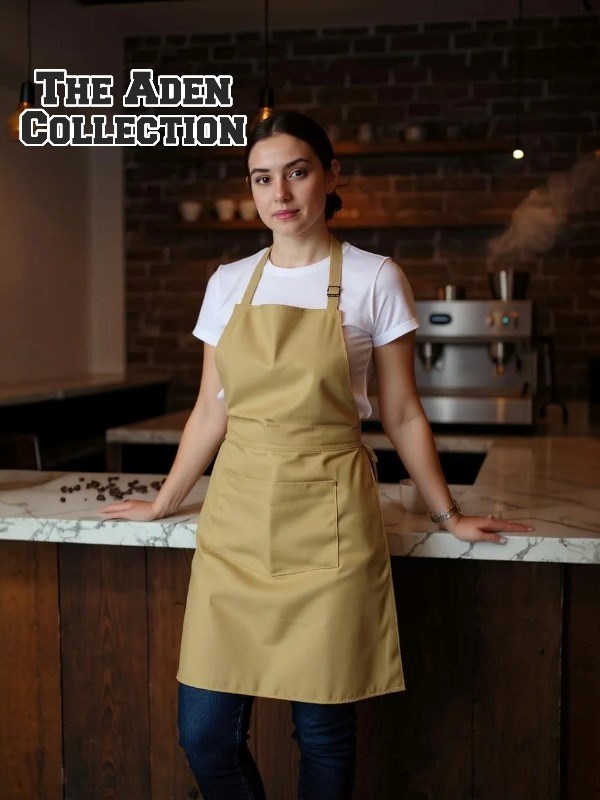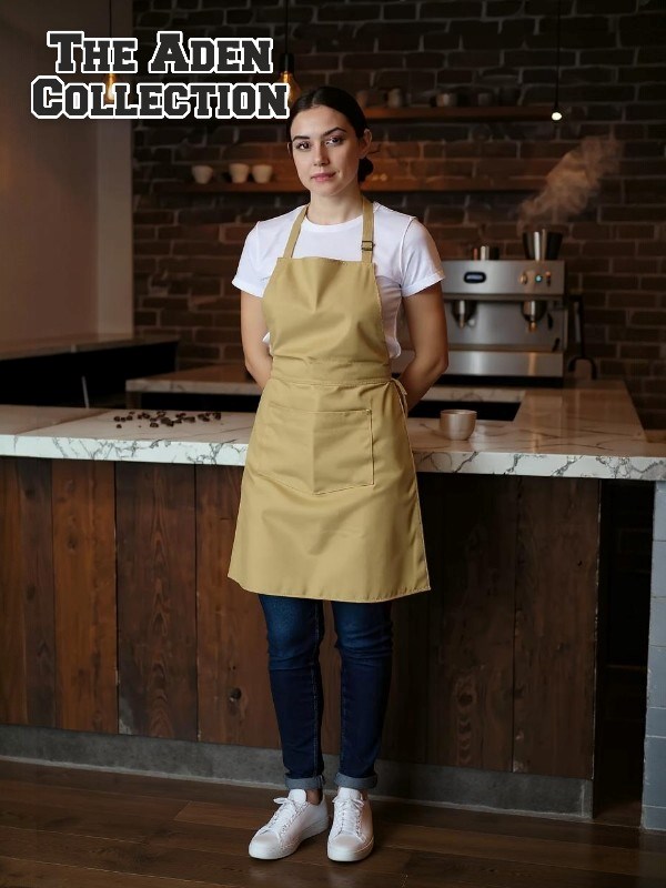 Alpaka Bej Renk Boyundan ayarlı cepli önlük.