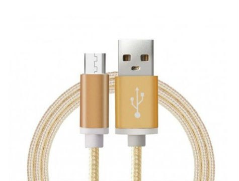 Biyomak® Android Örgü Şeklinde Renkli Çelik Şarj Data Kablosu - Gold