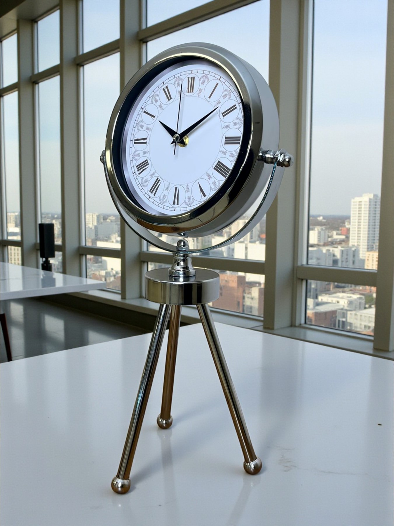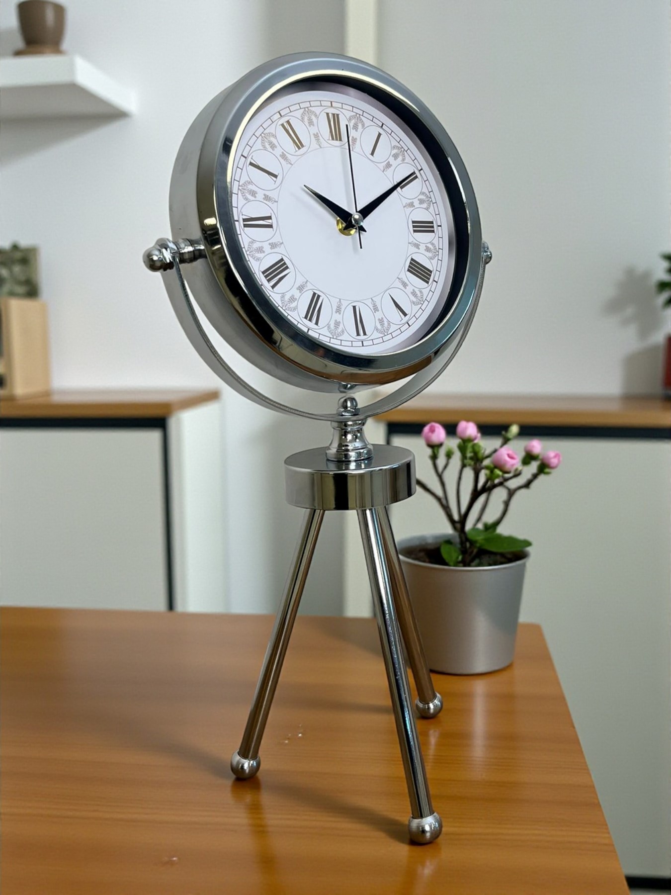 45 x 25 cm ölçülerindeki bu şık krom üç ayaklı masa saati, modern tasarımı ve parlak metal gövdesiyle her ortamda dikkat çeken zarif bir dekorasyon ürünüdür. Gerçek cam korumalı kadranı sayesinde uzun ömürlü ve net bir görüntü sunar. Sessiz çalışan mekanizması ile ev, ofis ve çalışma alanlarında konforlu bir kullanım sağlar. Dayanıklı metal tripod ayak yapısı, saati sadece bir zaman göstergesi değil aynı zamanda estetik bir obje haline getirir.