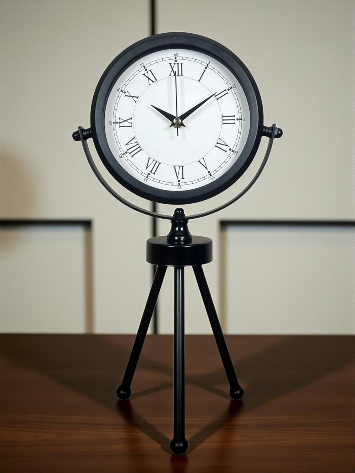 ® Yeni Ürün Asalet Siyah Üç Ayaklı Metal Masa Saati