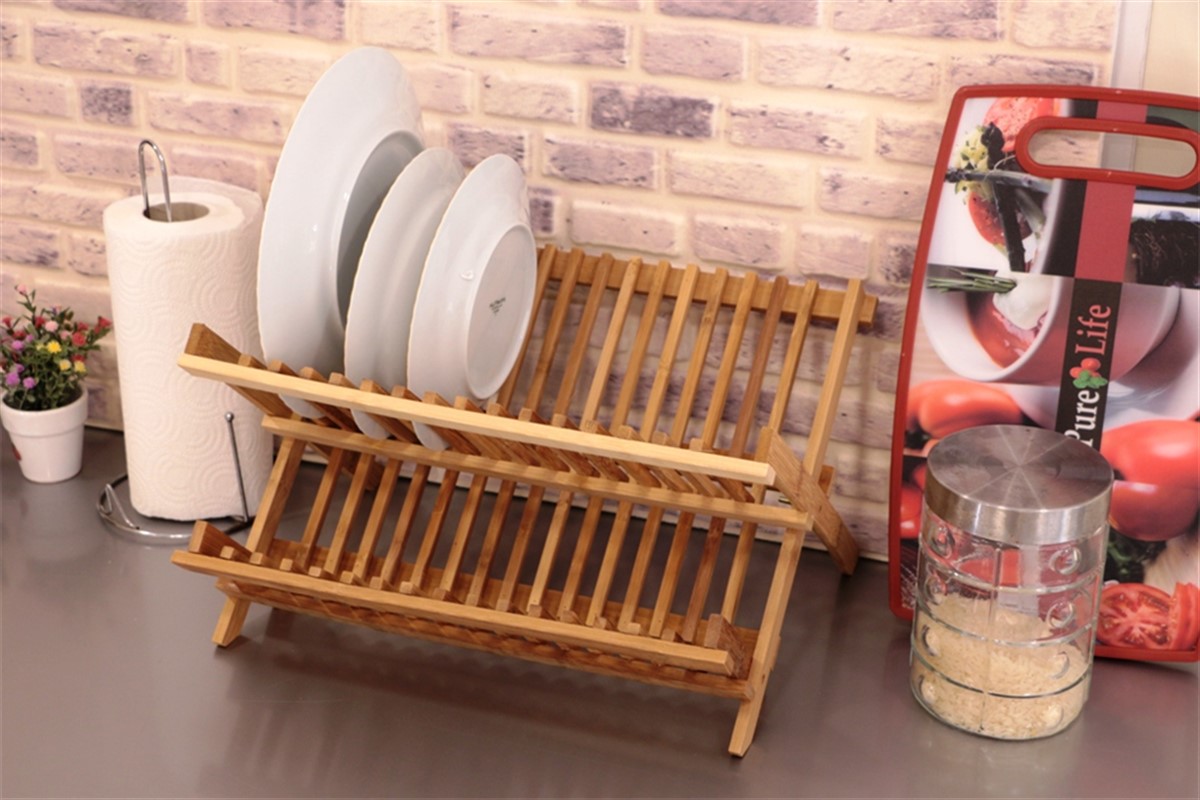 1 Adet Bambu 2 Katlı Tabaklık Bardaklık Tezgah Üstü Bulaşıklık
