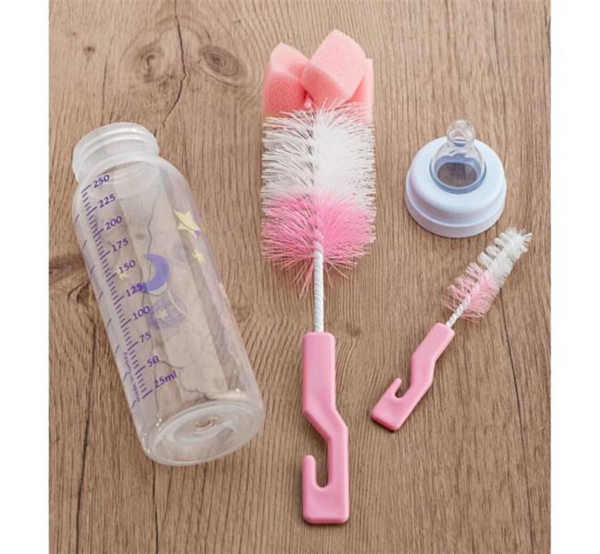 Biberon ve emziğin temizlenmesi için iki farklı boy fırçası bulunur.