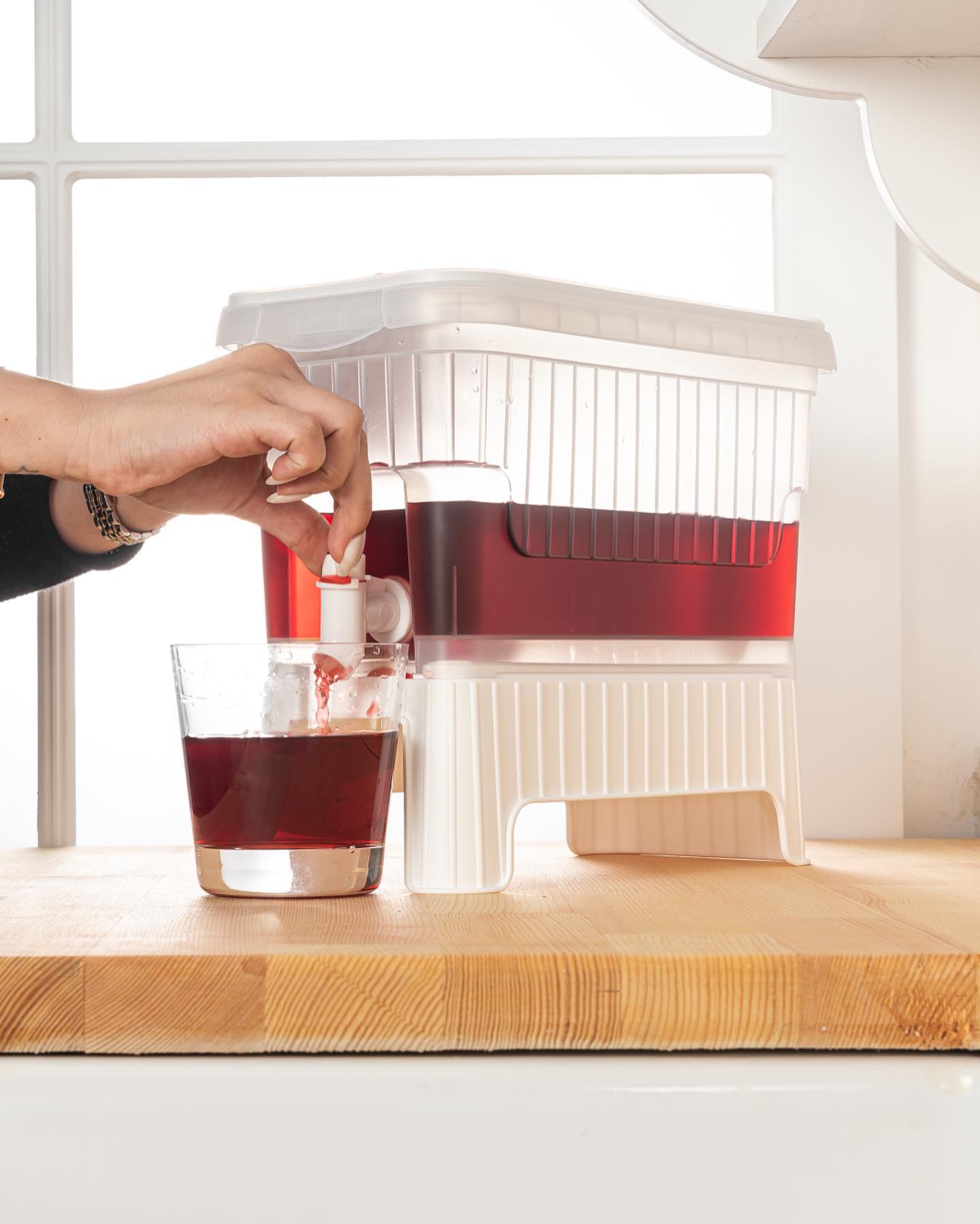 Musluklu yapısı sayesinde içeceklerinizi kolayca bardağınıza aktarabilirsiniz.