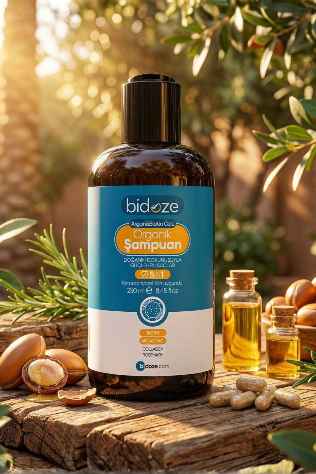Bidoze Argan & Biotin Özlü Organik Şampuan, doğanın en güçlü yağlarını ve saçın yapı taşlarını tek bir formülde birleştirerek saçınıza profesyonel bir bakım sunar.