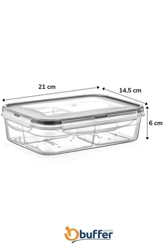 Biyomak® 4 Bölmeli Kilitli Kapaklı 1 Litre Erzak Saklama Kabı Diyet Saklama Kabı Taşınabilir Beslenme Kabı
