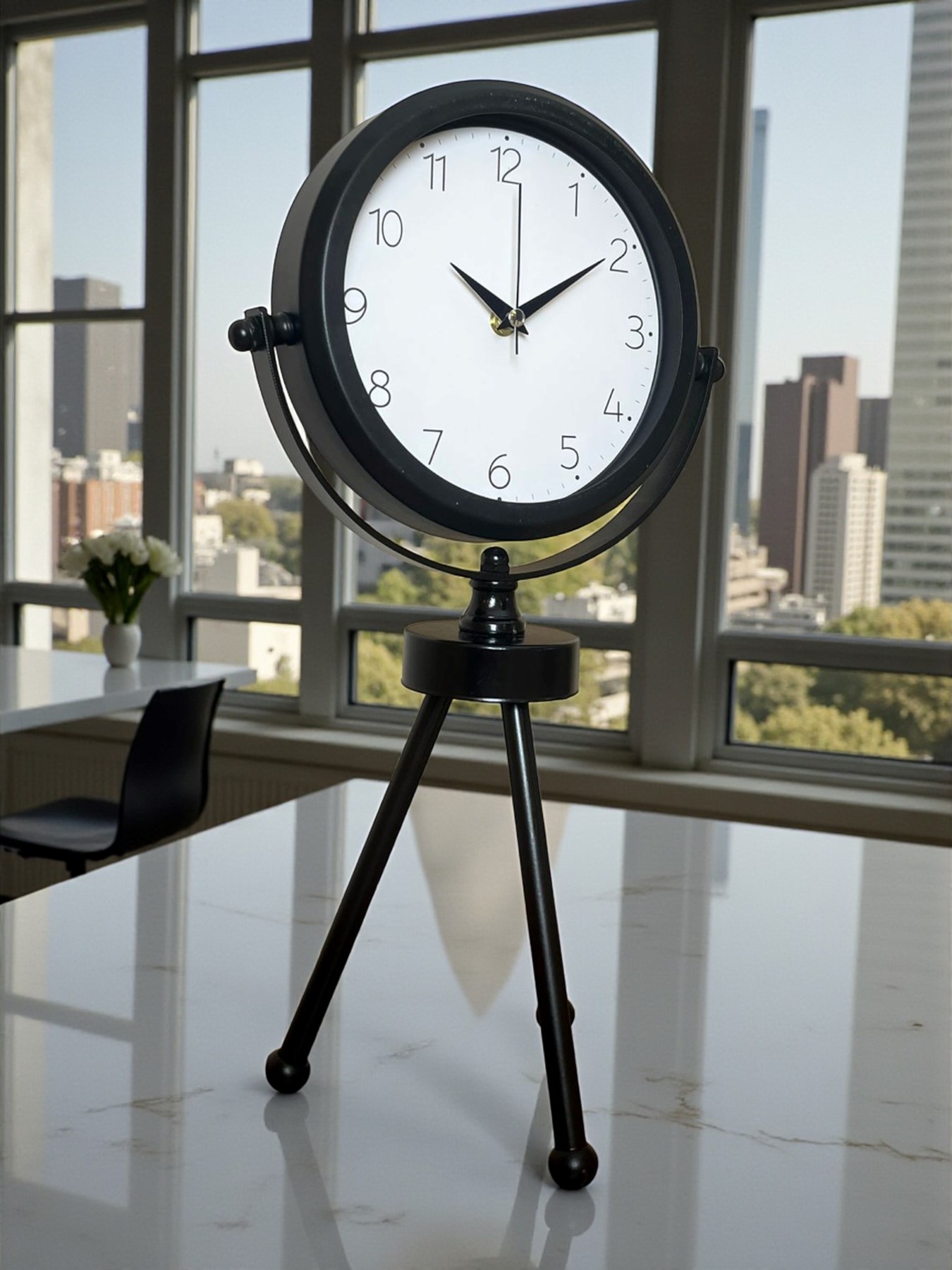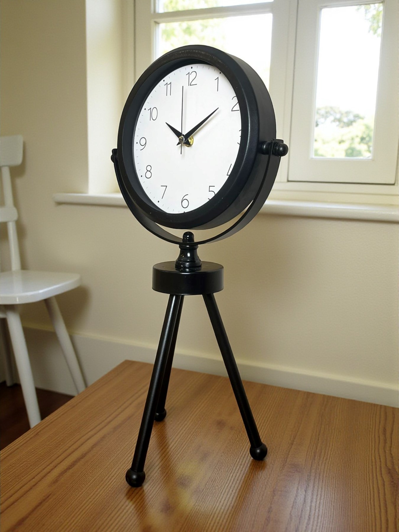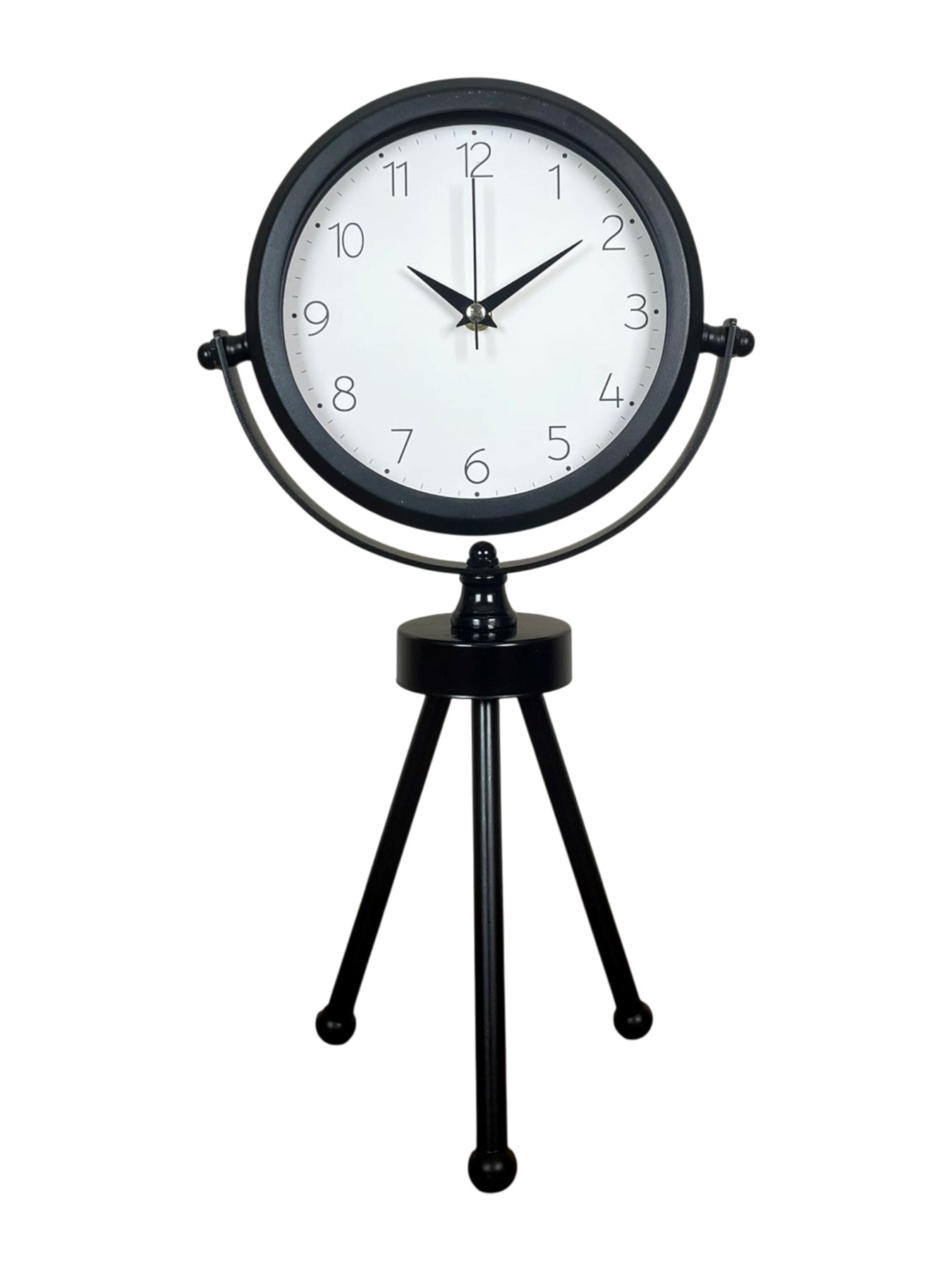 45 x 25 cm ölçülerindeki bu modern siyah üç ayaklı masa saati, minimal tasarımı ve güçlü duruşuyla her ortama şıklık katar. Gerçek cam korumalı kadranı sayesinde net görüntü ve uzun ömürlü kullanım sağlar. Tamamen metal gövdesi ve tripod ayak yapısıyla sağlam, dekoratif ve premium bir görünüm sunar. Sessiz akar saniye mekanizmasıyla ev, ofis ve çalışma alanlarında rahatsızlık vermeden kullanılabilir.