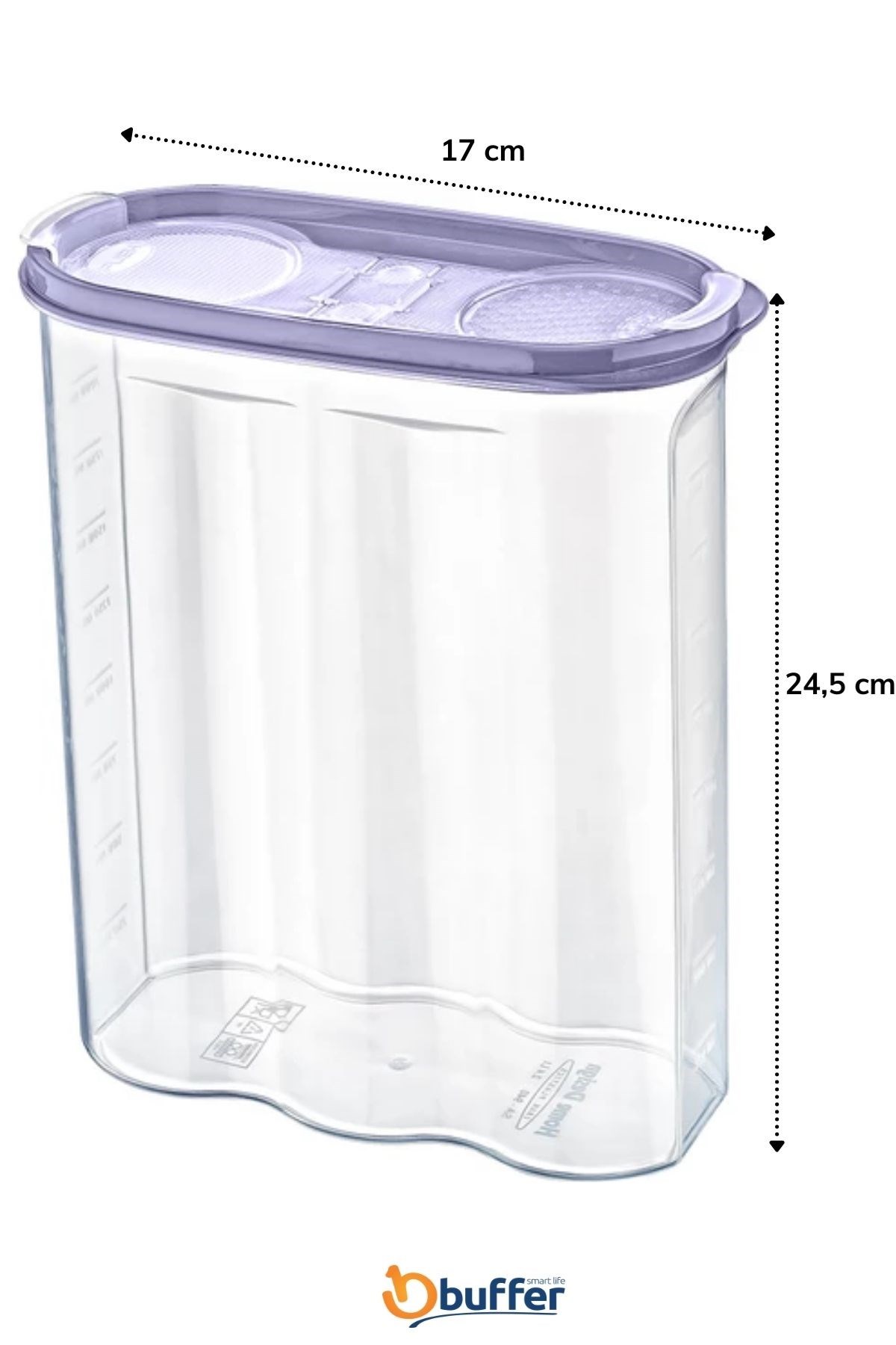 Biyomak® 2 Kapaklı Ölçekli Erzak Kuru Gıda Saklama Kutusu Kabı 2,4 Litre-SA940