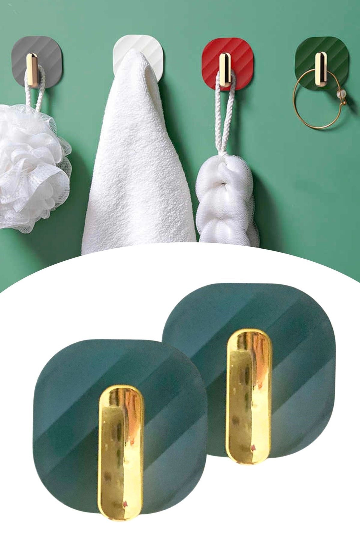 ® Yeni Ürün 2li Yapışkanlı Retro Askılık Dolap Kapak Kulpu Yeşil