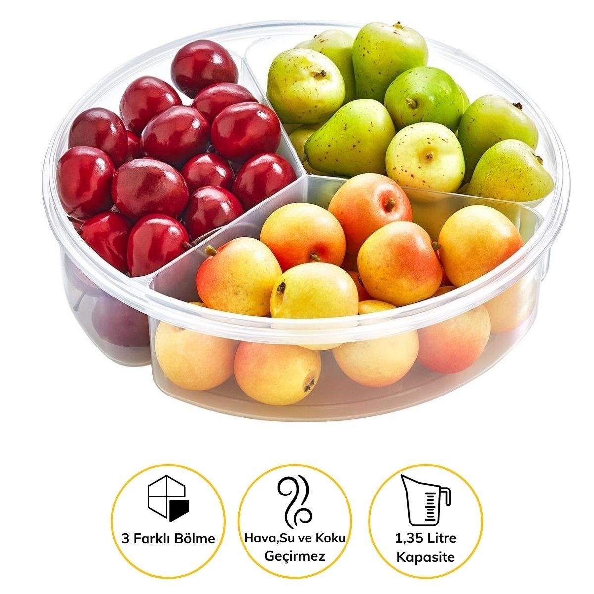 Biyomak® 3 Bölmeli Kilitli Kapaklı 1,35 Litre Yuvarlak Erzak Saklama Kabı Diyet Saklama Kabı Taşınabilir Beslenme Kabı