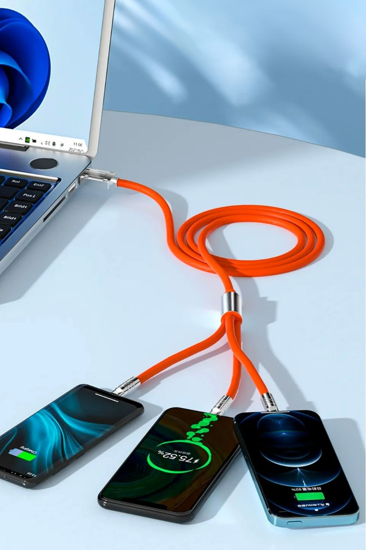 Biyomak® 3 Şarj Aleti 1 Arada Çinko Alaşım Hızlı Şarj Kablosu Turuncu