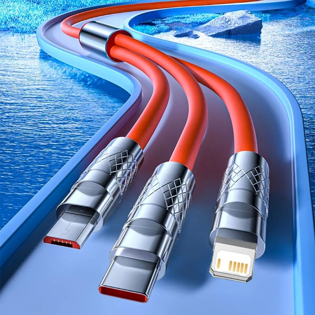 Bu 3 Şarj Aleti 1 Arada Çinko Alaşım Hızlı Şarj Kablosu, cihazlarınızı şarj etmek için ihtiyacınız olan her şeyi sunar. Pratik tasarımı ve hızlı şarj özelliğiyle günlük yaşamınızı kolaylaştırır.