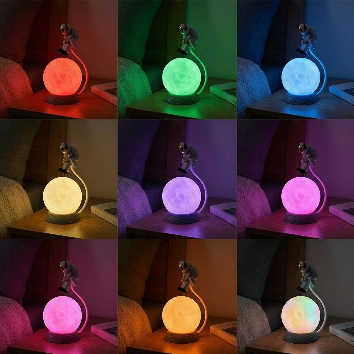 BUFFER® 3D Ay Üzerinde Astronot LED Gece Lambası – Dokunmatik 10 Renk Değiştiren Dekoratif Çocuk Odası Masaüstü Ay Lambası