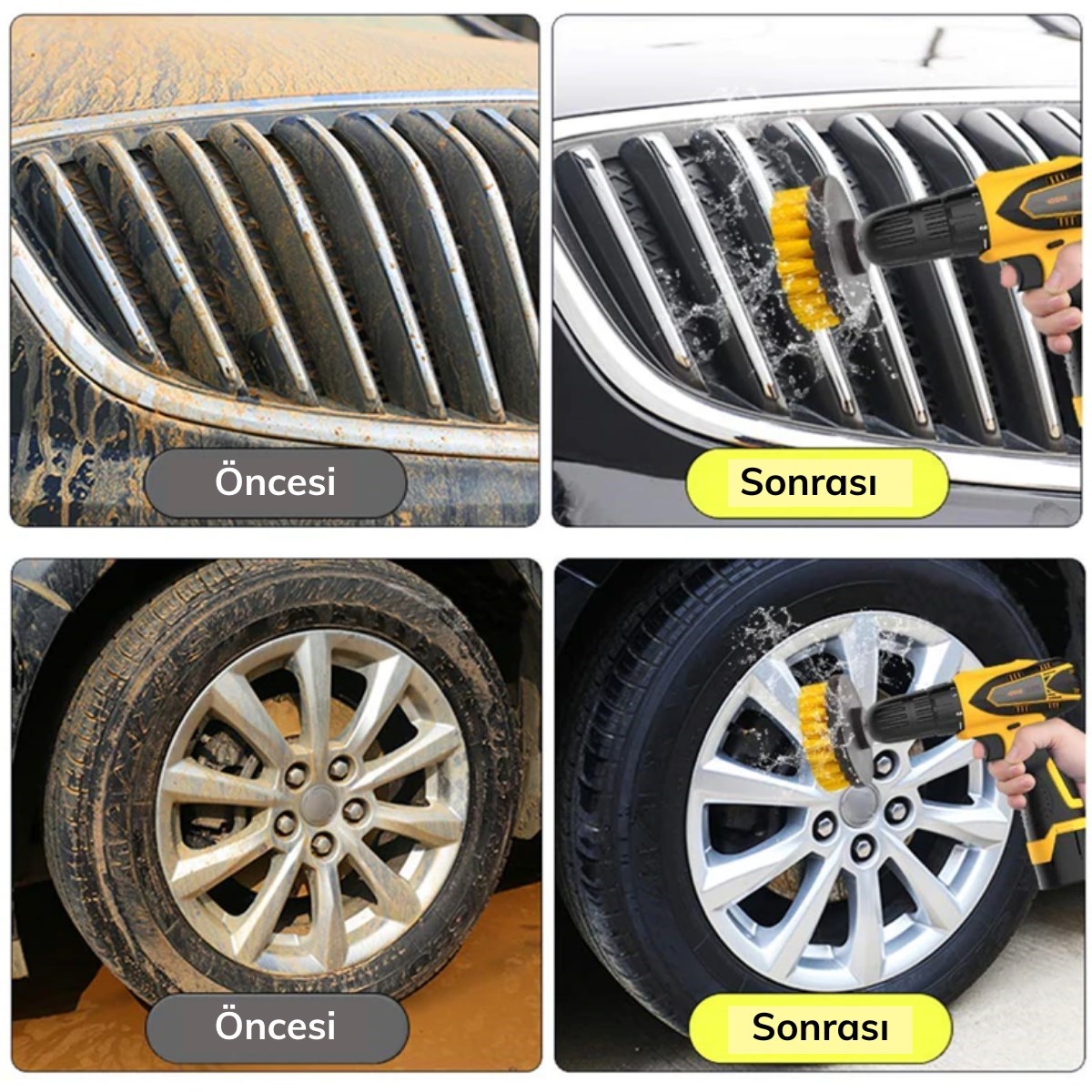 ® Yeni Ürün 3lü Matkap Ucu Banyo Küvet Duşakabin Araba Tekerliği Koltuk Yıkama Temizleme Fırçası Seti