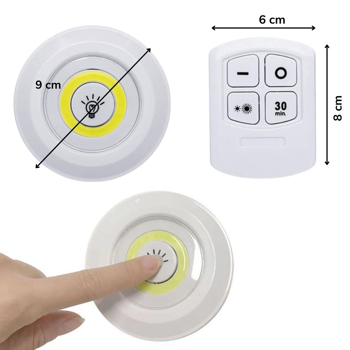 Kumandalı yapışkan lamba, kolay kullanıma sahiptir Kumandası ile yönlendirebiliyor olmakla birlikte spotların üzerindeki düğmelerle de açma kapama komutlarını verebilirsiniz