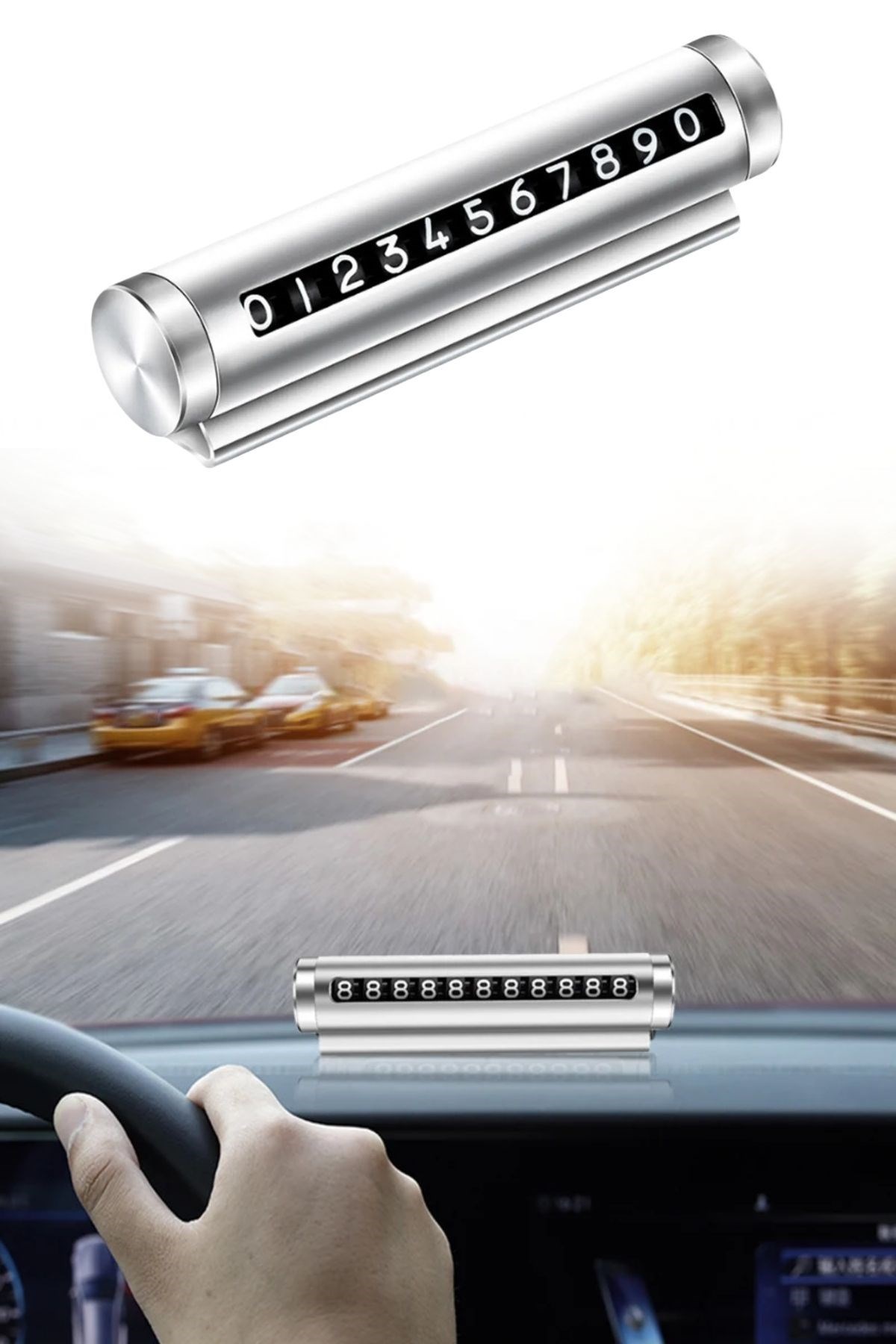 Alüminyum Kasa Gri Renk Çevirmeli Araç İçi Telefon Numaratörü Park Oto Numaratörü, modern ve şık tasarımı ile park halindeyken aracınızın iletişim bilgilerini kolayca sergilemenizi sağlar. Alüminyum kasası, gri renk seçeneği ve çevirmeli numaratörü ile estetik ve işlevselliği bir arada sunar.