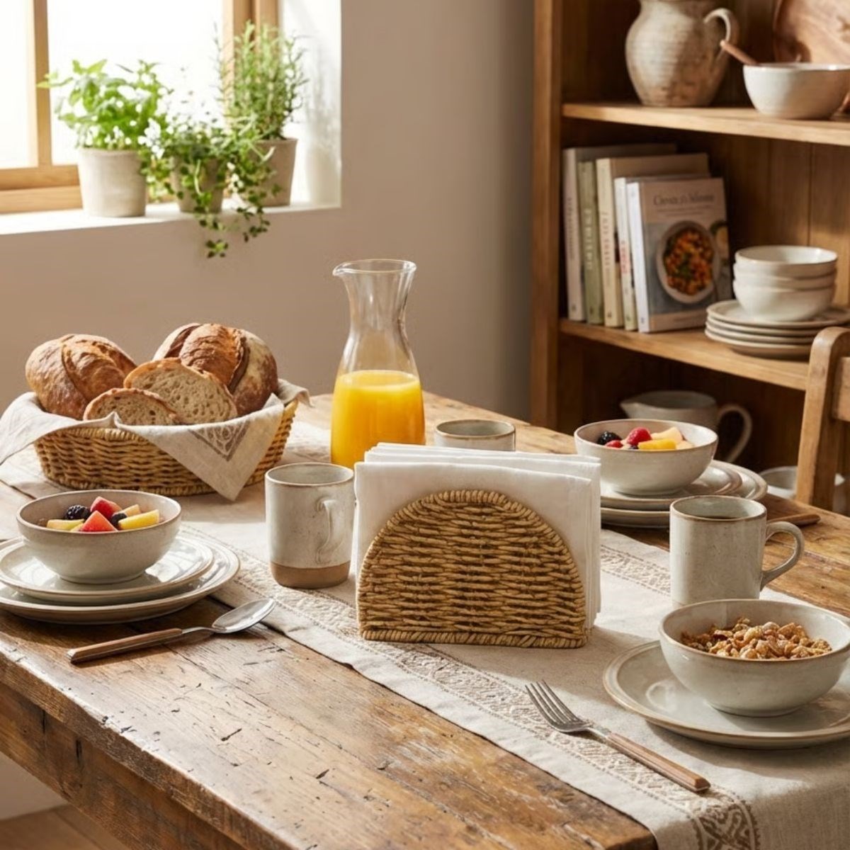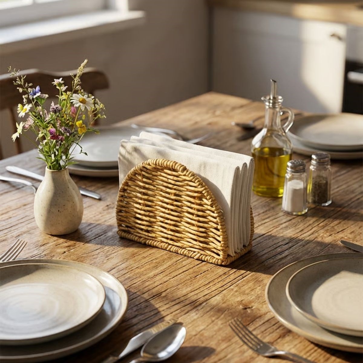 ® Yeni Ürün Dekoratif Plastik Rattan Dikdörtgen Peçetelik–Doğal Hasır Dokulu Masaüstü Peçete Standı