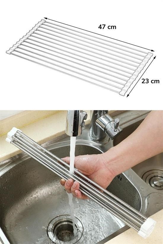 Biyomak® Evye Üstü Katlanır Nihale Paslanmaz Çelik Pratik Sebze Meyve Bulaşık Kurutma Süzgeci