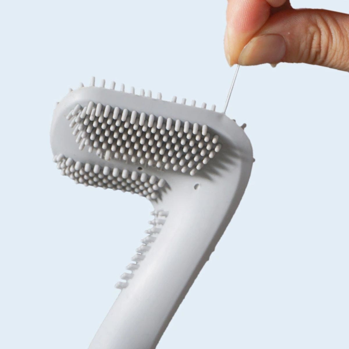 Yüksek kaliteli silikon malzemelerden yapılmış fırçanın tırtıkları klozete ve fayansa zarar vermez iz bırakmaz Saç veya kıl gibi maddelerin dolaşmasına elverişli olmadığı için temizliği kolaydır