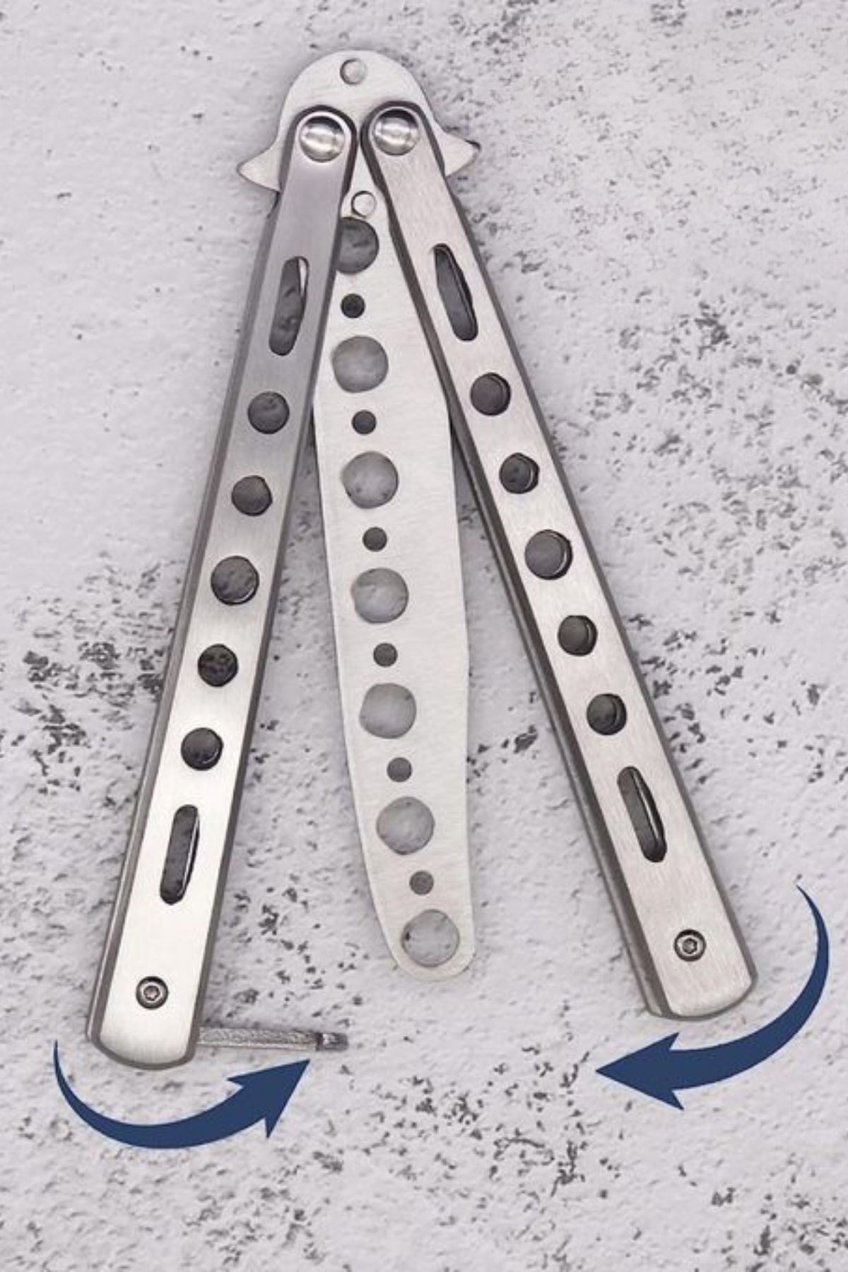 Biyomak® Gri Katlanabilir Paslanmaz Çelik Kelebek Bıçak Tarak, profesyonel berberlerin ve kişisel bakımına özen gösterenlerin vazgeçilmez aksesuarlarından biri! Şık ve dayanıklı tasarımıyla hem saç hem de sakal ve bıyık bakımınızı kolaylaştırır.