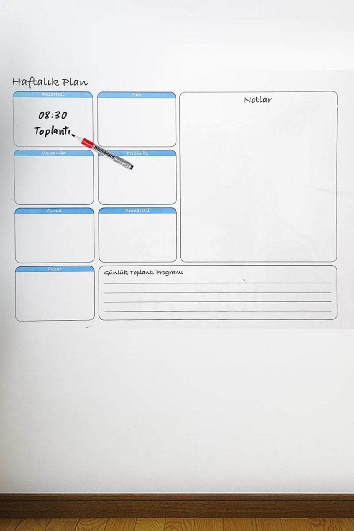 Haftalık iş ve çalışma planlarınızı düzenli bir şekilde organize edebileceğiniz duvara yapıştırılabilir sticker