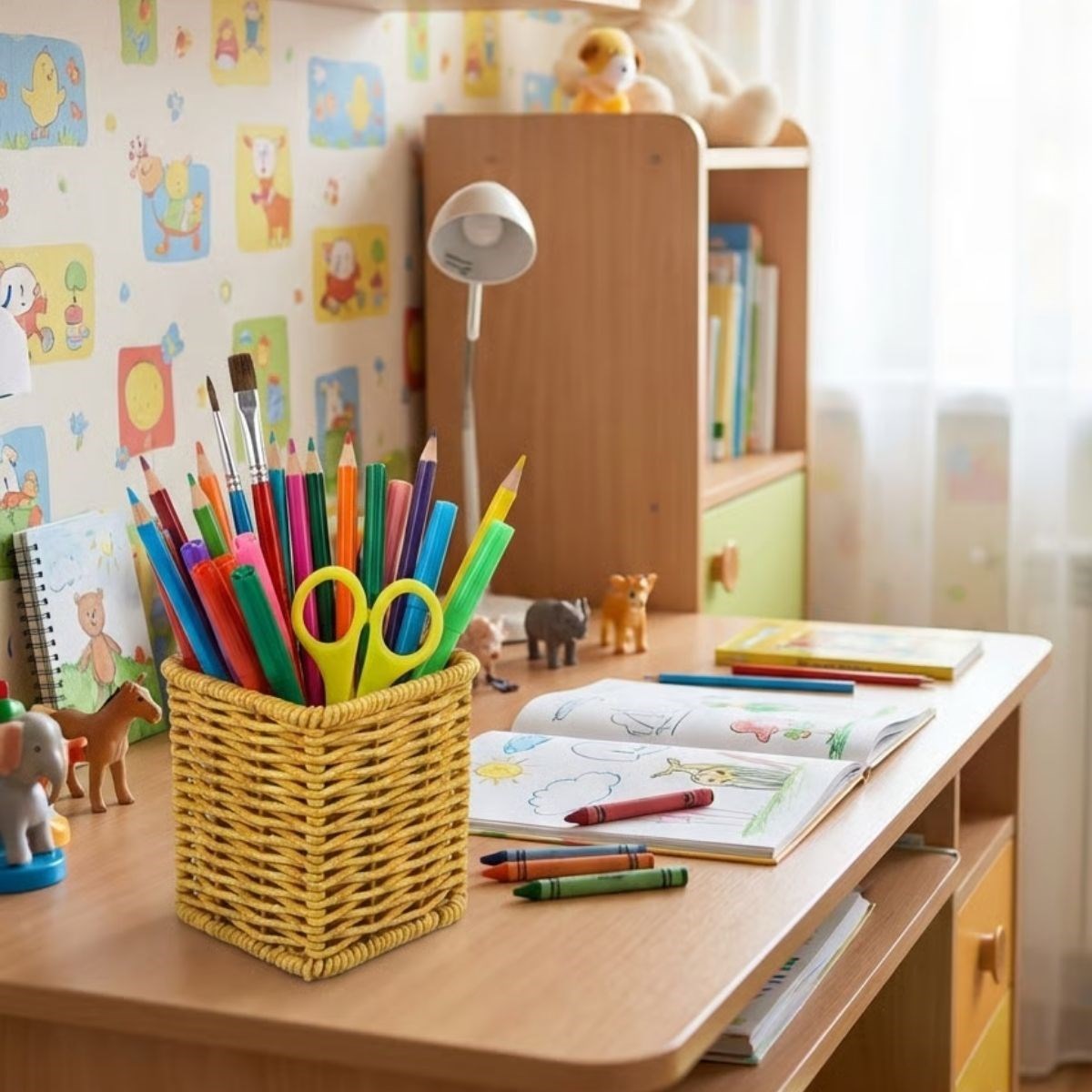 ® Yeni Ürün 3 Bölmeli Plastik Rattan Düzenleyici–Saplı Masaüstü Organizer, Mutfak Kaşık Çatal Sepeti, Banyo & Ofis Çok Amaçlı Sunum Standı