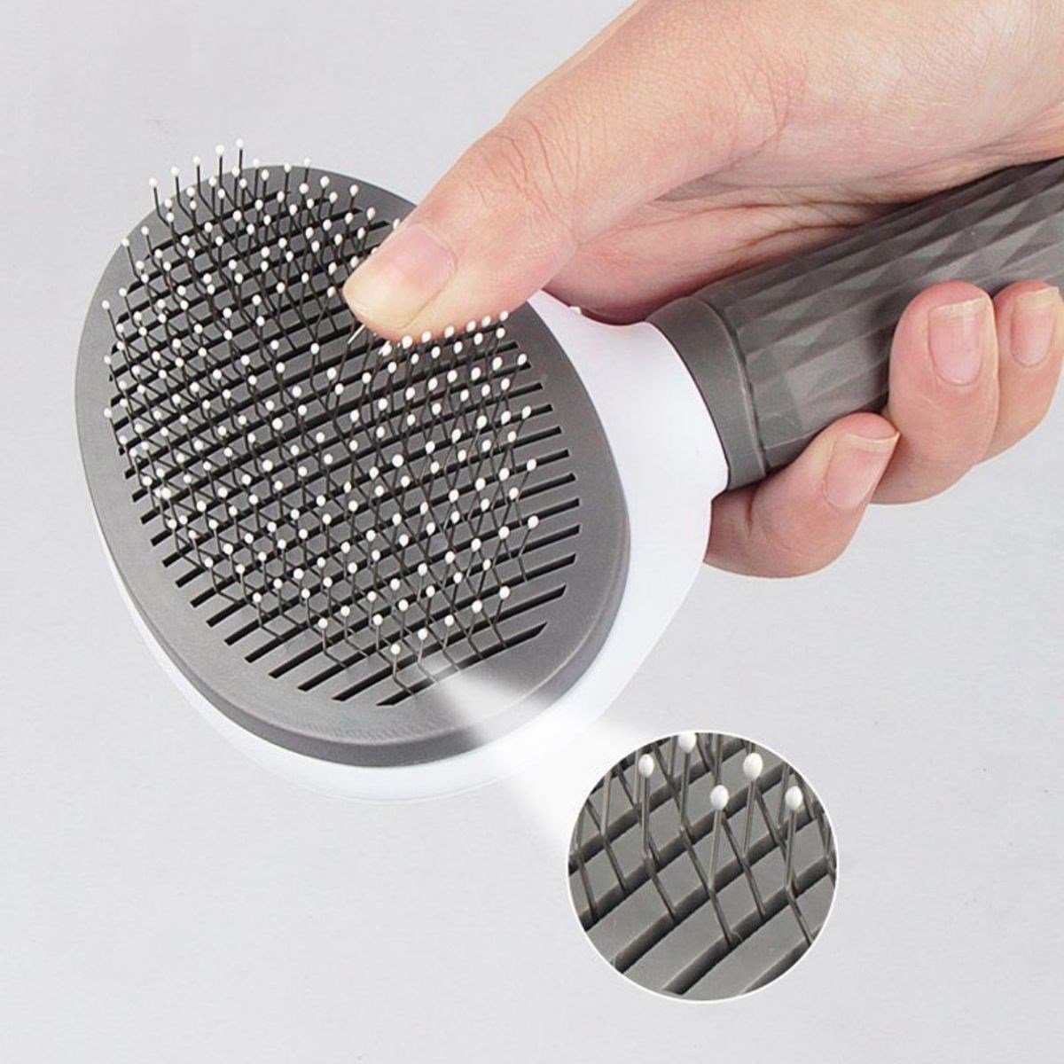 Biyomak® Kedi Köpek Tüy Toplayıcı Kendini Temizleyebilen Ergonomik Saplı Kullanımı Rahat Kaymaz Evcil Hayvan Tarağı Gri
