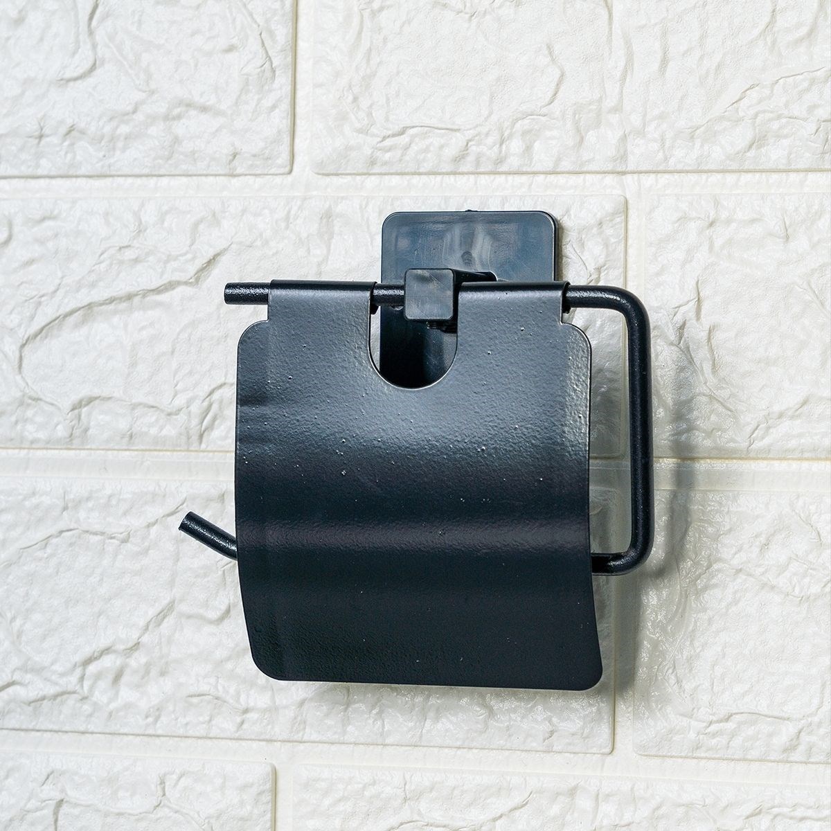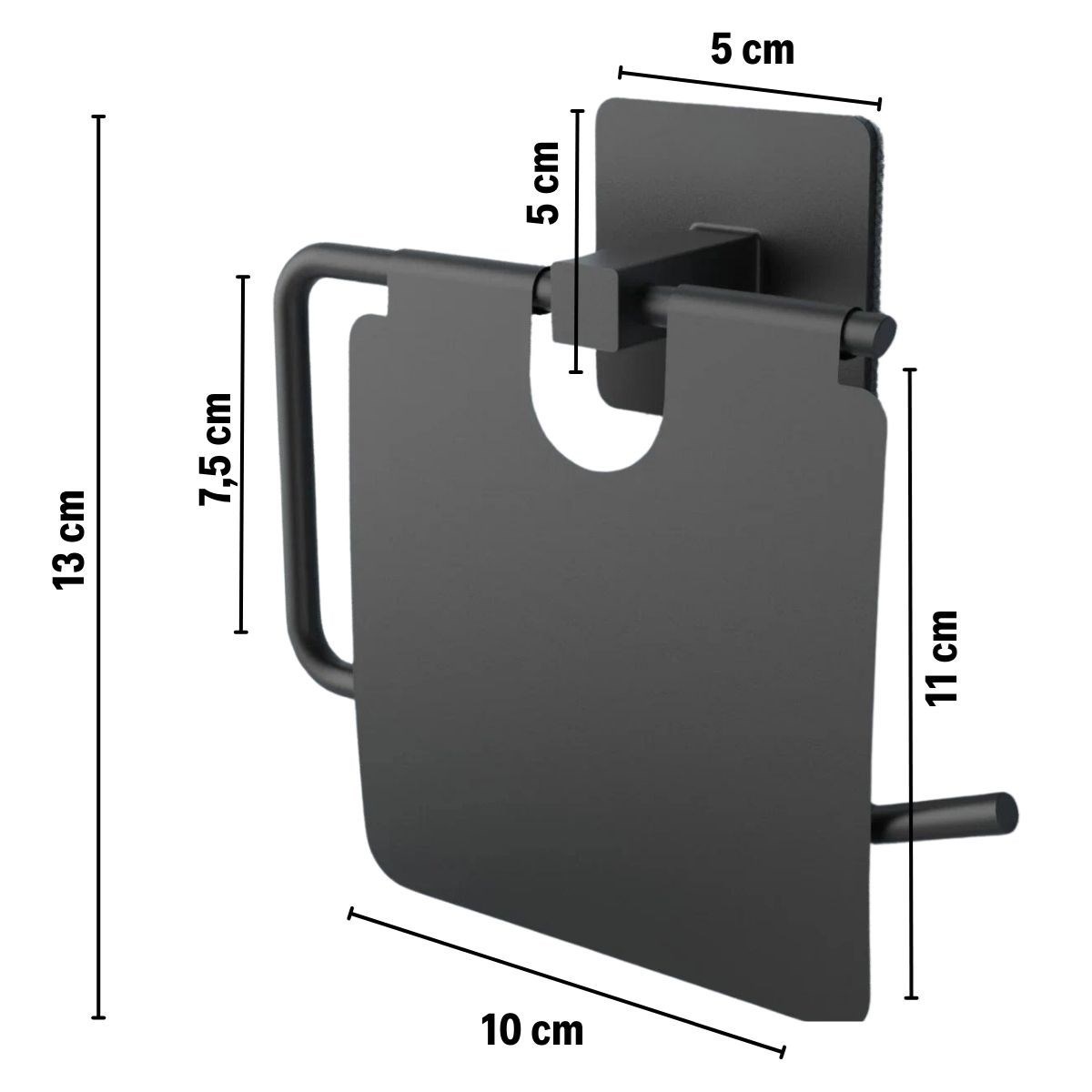 Biyomak® Kendiliğinden Yapışkanlı Siyah Paslanmaz Metal Kapaklı Tuvalet Kağıtlığı Aparatı
