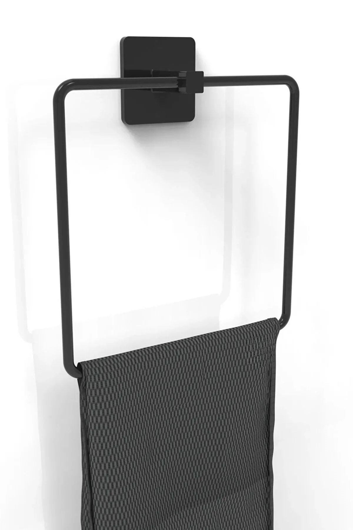Kendiliğinden yapışkanlı siyah paslanmaz metal kare havluluk, şıklık ve işlevselliği bir arada sunarak, kullanıcılarına havlu saklama konusunda pratik bir çözüm sunar. Modern tasarımıyla dekorunuza uyum sağlar ve kullanım kolaylığı sağlar.