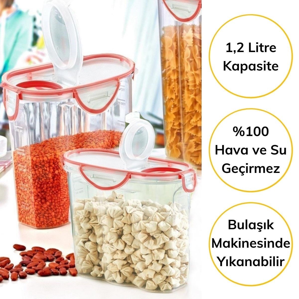 Biyomak® Kilitli Kapaklı 1,7 Litre Erzak Saklama Kabı
