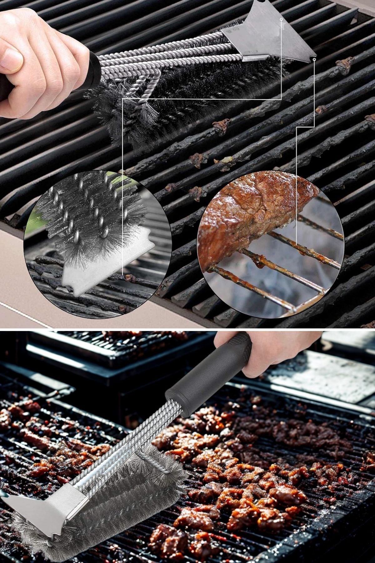 Biyomak® ® Mangal Izgara Temizleme Fırçası – Paslanmaz Çelik Telli, Uzun Saplı Grill Temizlik Aparatı Mangal Temizlik Fırçası