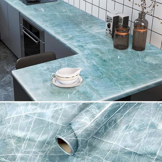 Biyomak® Mermer Desenli Masa Tezgah Mutfak Duvar Kağıdı Su Geçirmez Yapışkanlı Folyo Sticker Mavi 5x0,6m